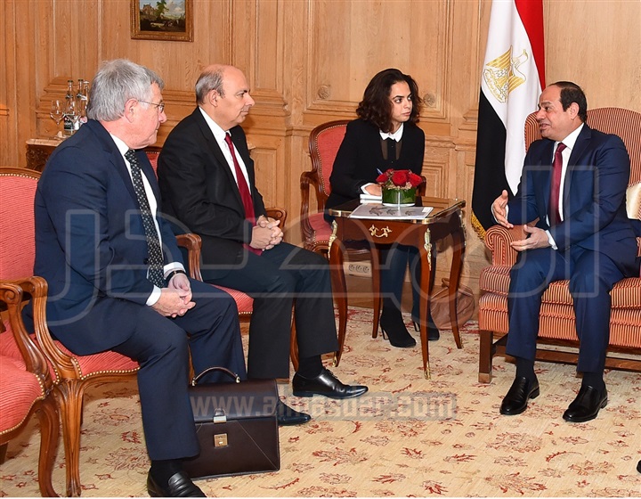 وأضاف السفيرعلاء يوسف أن الرئيس التقى عقب هذا اللقاء برئيس مجلس إدارة شركة "ديي سي إن أس " الفرنسية إيرفيه جيوو العاملة في مجال الصناعات البحرية.