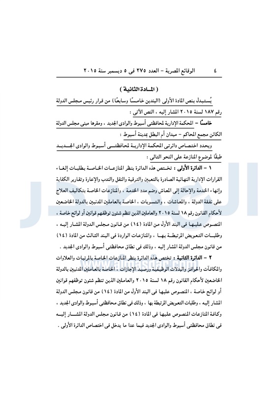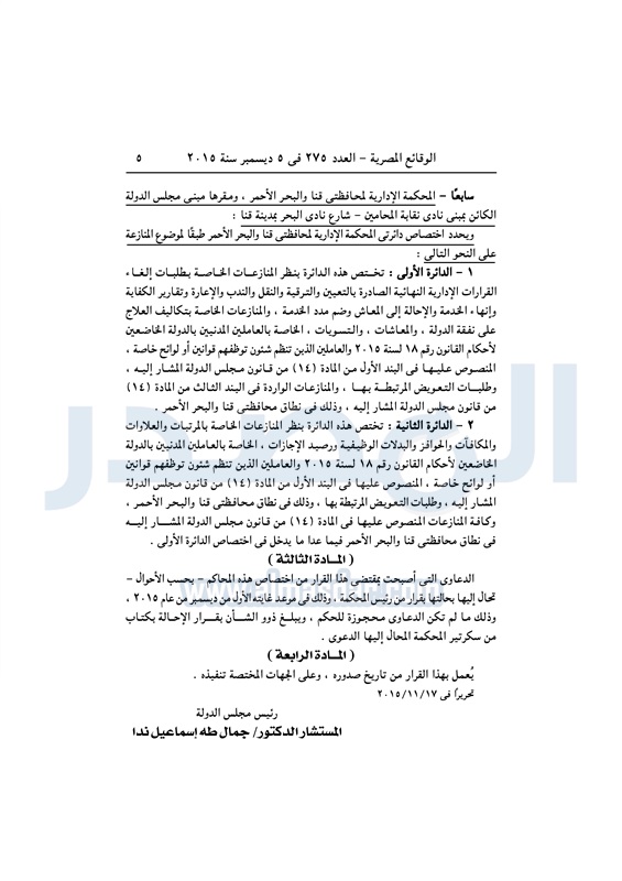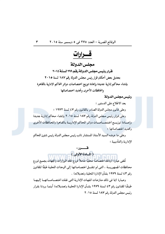 أخبار مصر "مجلس الدولة" يعدل قرارًا بإنشاء محاكم إدارية جديدة الأحد 06 ديسمبر 2015 - 10:45 ص 12/6/2015 10:45:40 AM صورة أرشيفية المصدر- خاص طباعة شارك نشرت الوقائع المصرية فى العدد رقم 275، الصادر فى 5 ديسمبر لسنة 2015، قرار مجلس الدولة رقم 299 لسنة 2015، بشأن تعديل أحكام قرار رئيس مجلس الدولة رقم 187 لسنة 2015 . لقراءة القرار : طباعة شارك مصر ديل المصريه 2015 تابع المصدر علي جوجل نيوز تطبيق نبض