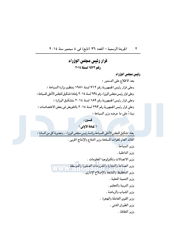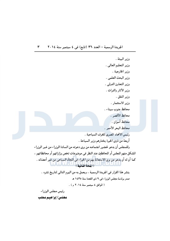 تنشر"المصدر" قرار رئيس الوزراء المهندس إبراهيم محلب بتشكيل المجلس الأعلى للسياحة
