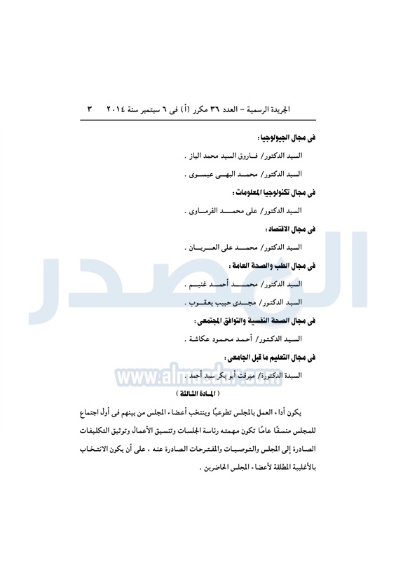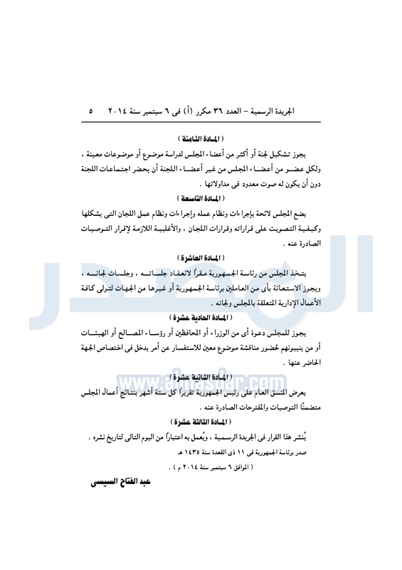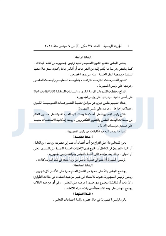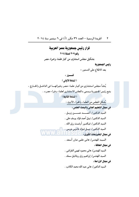 "المصدر" تنشر قرار رئيس الجمهورية "عبد الفتاح السيسى" فى الجريدة الرسمية بتشكيل مجلس علماء وخبراء مصر