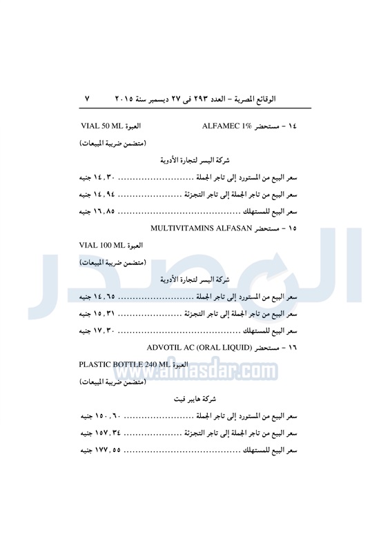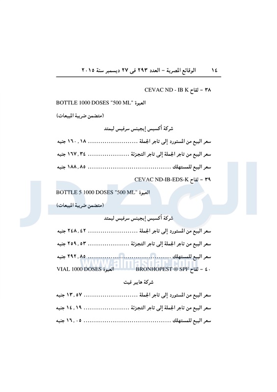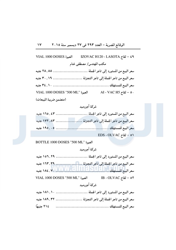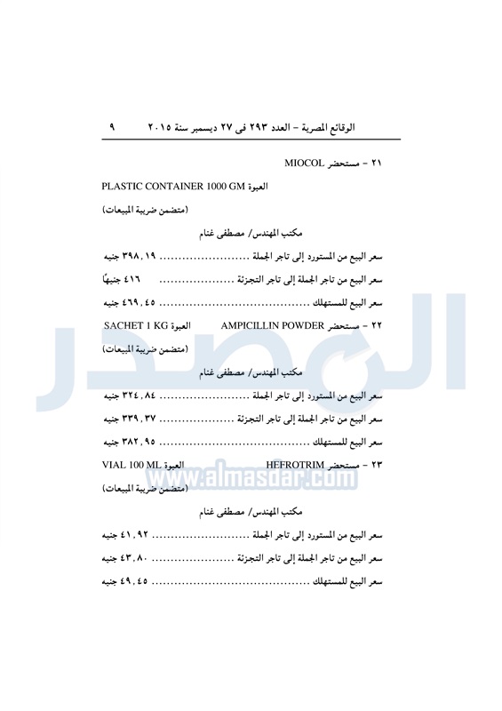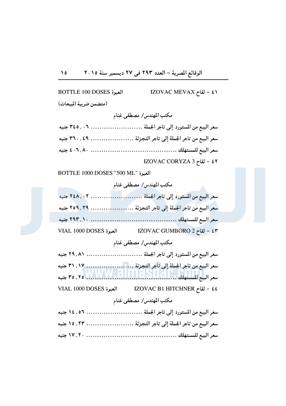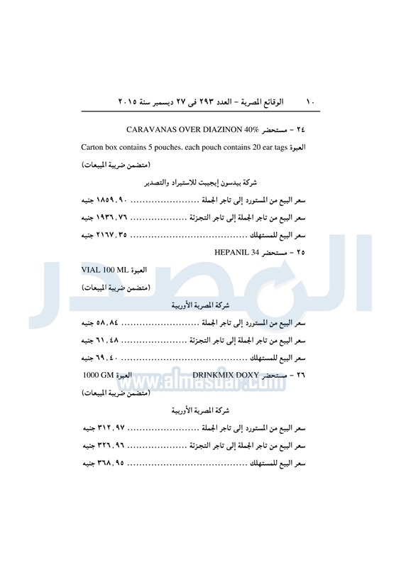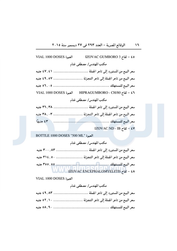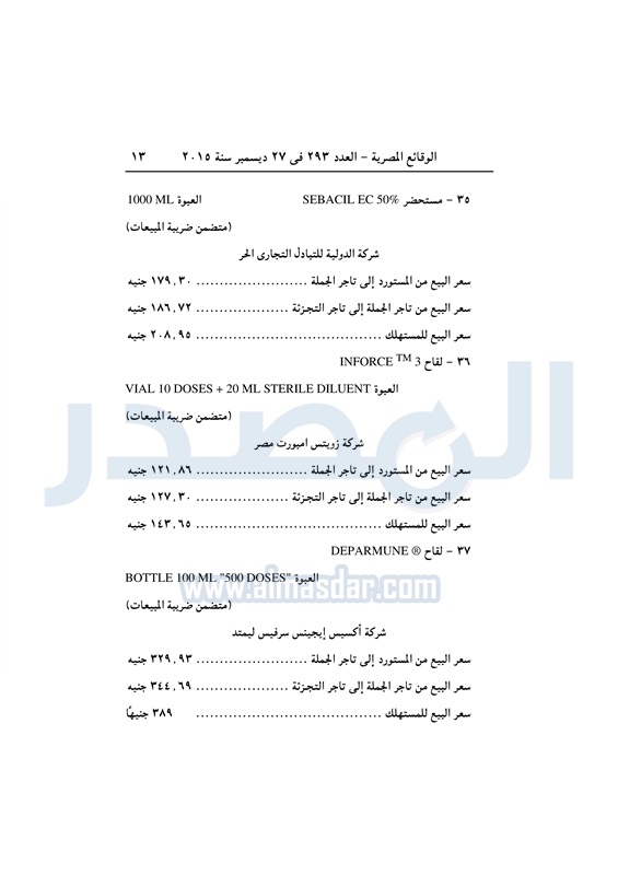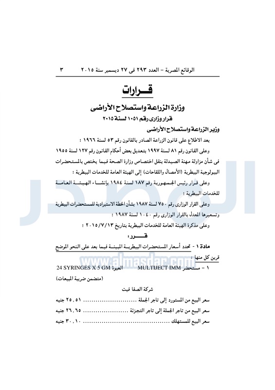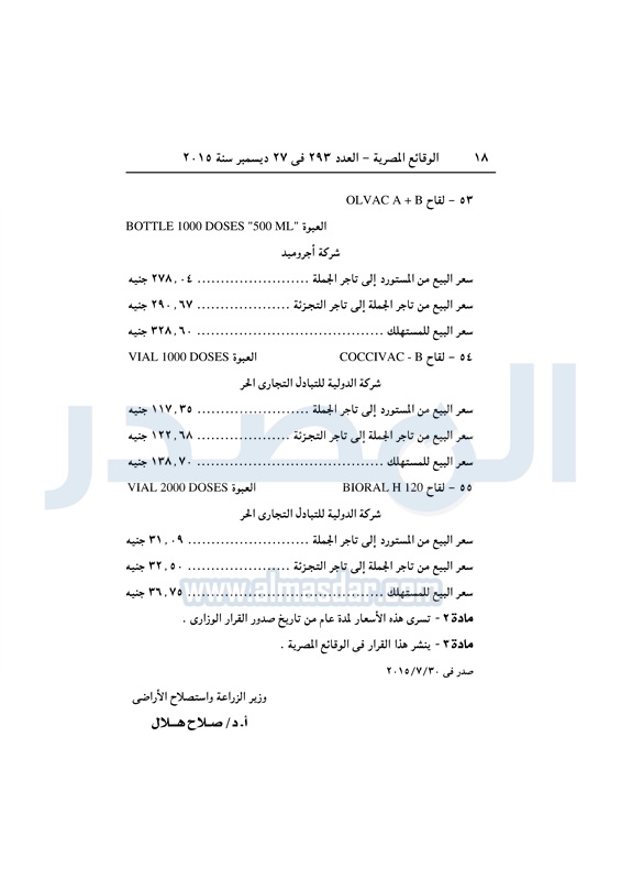 أخبار مصر "الزراعة" تعلن أسعار المستحضرات البيطرية الأحد 27 ديسمبر 2015 - 02:26 م 12/27/2015 2:26:38 PM صلاح الدين هلال وزير الزراعة السابق المصدر - خاص طباعة شارك نشرت الوقائع المصرية فى العدد رقم 293، الصادر فى 27 ديسمبر لسنة 2015، قرار وزارة الزراعة واستصلاح الأراضي، رقم 1051 لسنة 2015، تحديد أسعار المستحضرات البيطرية. لقراءة القرار: طباعة شارك وزارة الزراعة مصر الين المصريه الحديد 2015 تابع المصدر علي جوجل نيوز تطبيق نبض