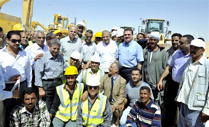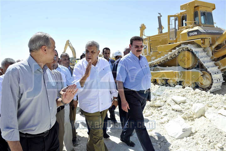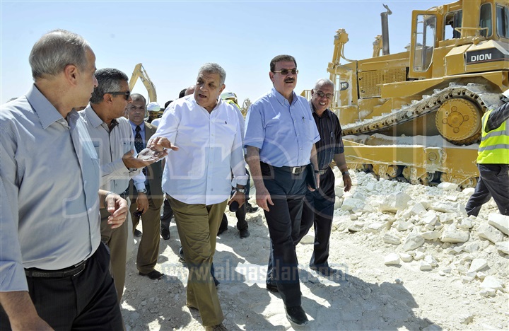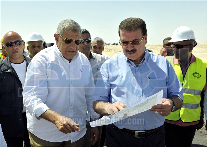 تفقد المهندس إبراهيم محلب، رئيس مجلس الوزراء، أعمال تقوية وتغطية طريق " الداخلة-الفرافرة البحرية"، يرافقه وزراء: التخطيط، والزراعة والنقل، ومحافظ الوادى الجديد، ورئيس هيئة الطرق والكبارى والنقل البرى.