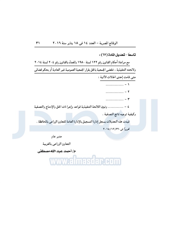 الوقائع المصرية تنشر قرارات "العمومية غير العادية" لبعض الجمعيات الزراعية بالغربية