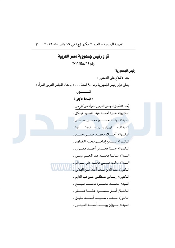 أخبار مصر "السيسي" يقرر إعادة تشكيل المجلس القومي للمرأة الأحد 24 يناير 2016 - 06:22 م 1/24/2016 6:22:49 PM عبد الفتاح السيسي رئيس الجمهورية المصدر - خاص طباعة شارك نشرت الجريدة الرسمية فى العدد 2 مكرر ج، الصادر فى 19 يناير لسنة 2016، قرار رئيس جمهورية مصر العربية، رقم 19 لسنة 2016، بإعادة تشكيل المجلس القومي للمرأة.لقراءة القرار: طباعة شارك مصر قرار جمهورى رئيس الجمهورية المجلس القومي للمرأة الجريدة الرسمية أخبار مصر تابع المصدر علي جوجل نيوز تطبيق نبض