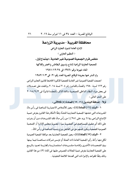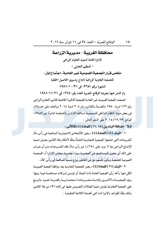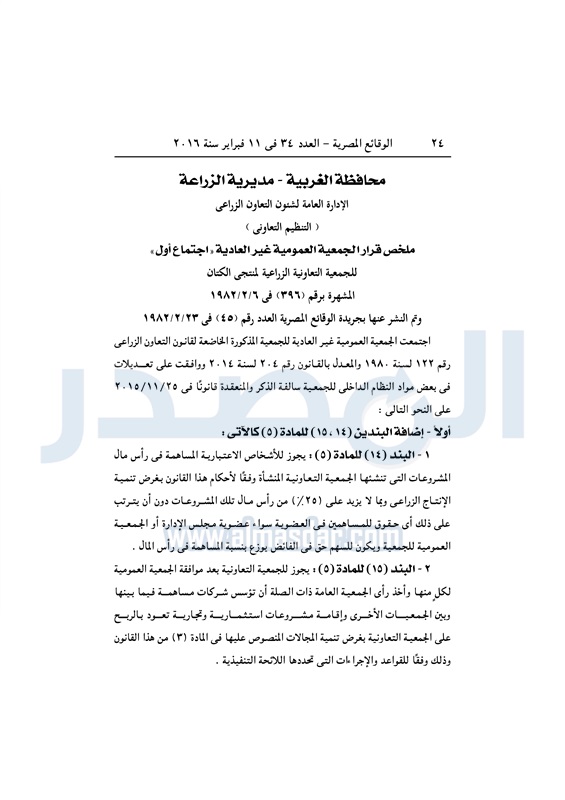 محافظات "مديرية الزراعة" بالغربية تصدر ملخص قرارات الجمعيات العمومية الخميس 11 فبراير 2016 - 02:31 م 2/11/2016 2:31:56 PM ديوان محافظة الغربية - صورة أرشيفية المصدر - خاص طباعة شارك نشرت الوقائع المصرية فى العدد 34، الصادر في 11 فبراير لسنة 2016، ملخصات قرارات الجمعيات العمومية غير العادية لبعض الجمعيات التابعة لمديرية الزراعة بالغربية.لقراءة الملخصات: طباعة شارك الوقائع المصرية الغربية الزراعة الجمعيات العمومية تابع المصدر علي جوجل نيوز تطبيق نبض