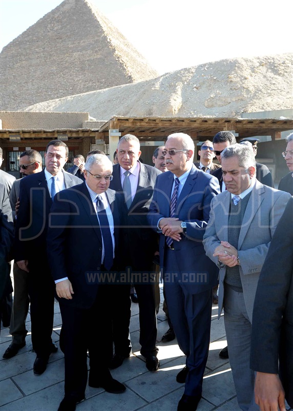 قام المهندس شريف إسماعيل، رئيس مجلس الوزراء، عصر اليوم الخميس، يرافقه وزيرى السياحة والاثار ومحافظ الجيزة، بزيارة إلى منطقة الأهرامات بالجيزة، لمتابعة أعمال تنفيذ مشروع تطوير منطقة أهرامات الجيزة، والتي يجري العمل به تنفيذاً لتوجيهات الرئيس عبد الفتاح السيسي، لمجموعة العمل المنوطة بالمشروع، والتي تضم وزارات الآثار والسياحة والإسكان، ومساعد رئيس الجمهورية للمشروعات القومية والإستراتيجية، ورئيس الهيئة الهندسية للقوات المسلحة، ورئيس هيئة المجتمعات العمرانية الجديدة.