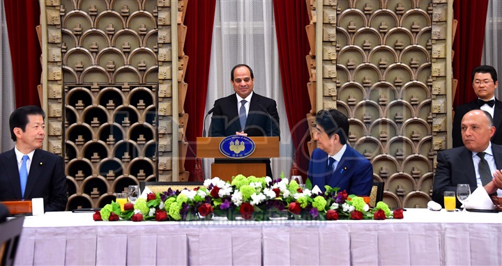 بداية، أود أن أعبر عن تقديرى لحفاوة الاستقبال التى لاقيناها خلال هذه الزيارة المهمة، والتى أكدت مجدداً خصوصية العلاقات بين مصر واليابان وحرص البلدين على تطوير هذه العلاقات والارتقاء بها بما يتناسب مع تطلعات الشعبين الصديقين ورغبتيهما فى التغلب على التحديات المشتركة وتطوير التعاون التنموى والاقتصادى فى عدد من المجالات الحيوية.