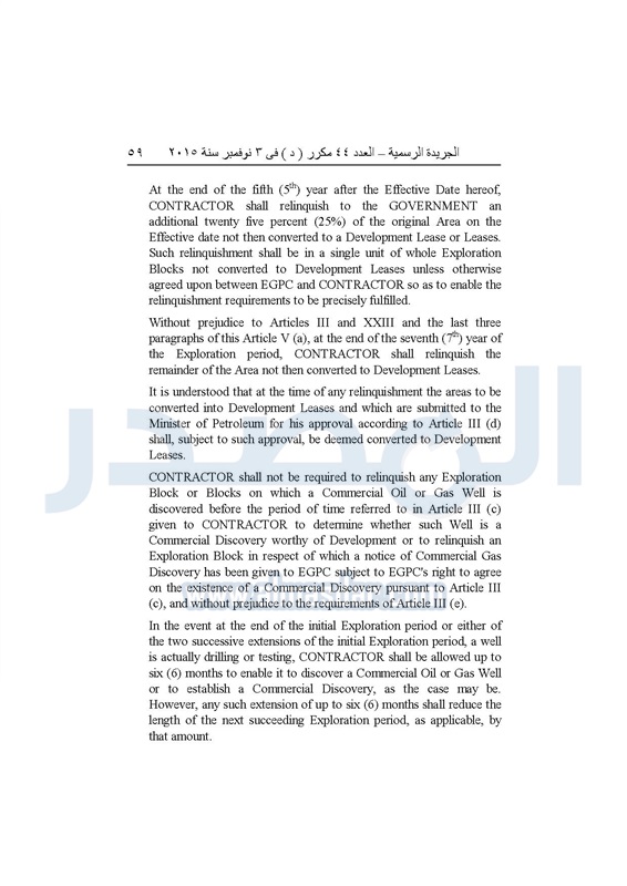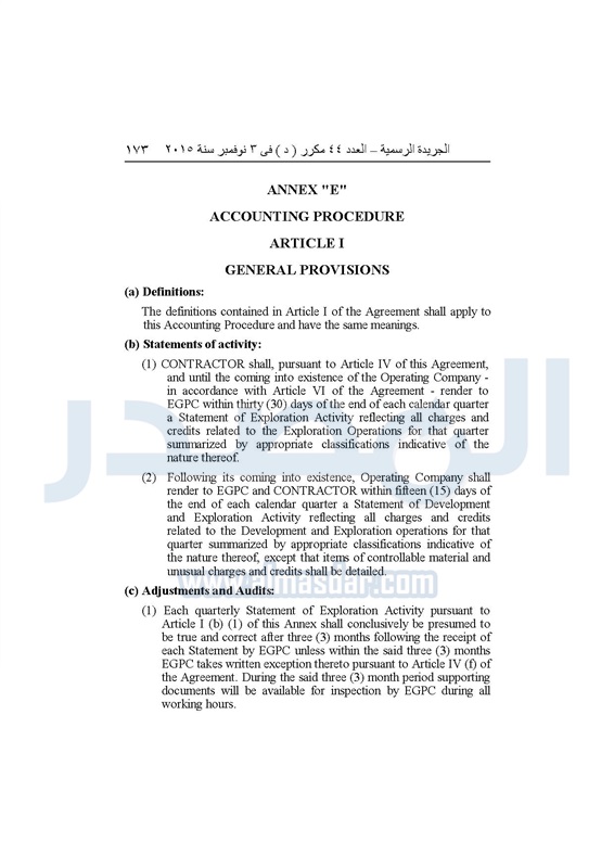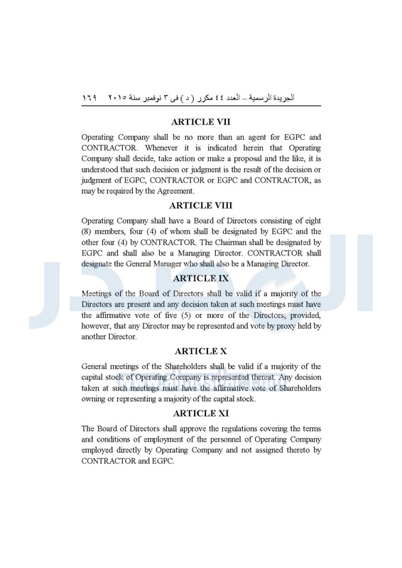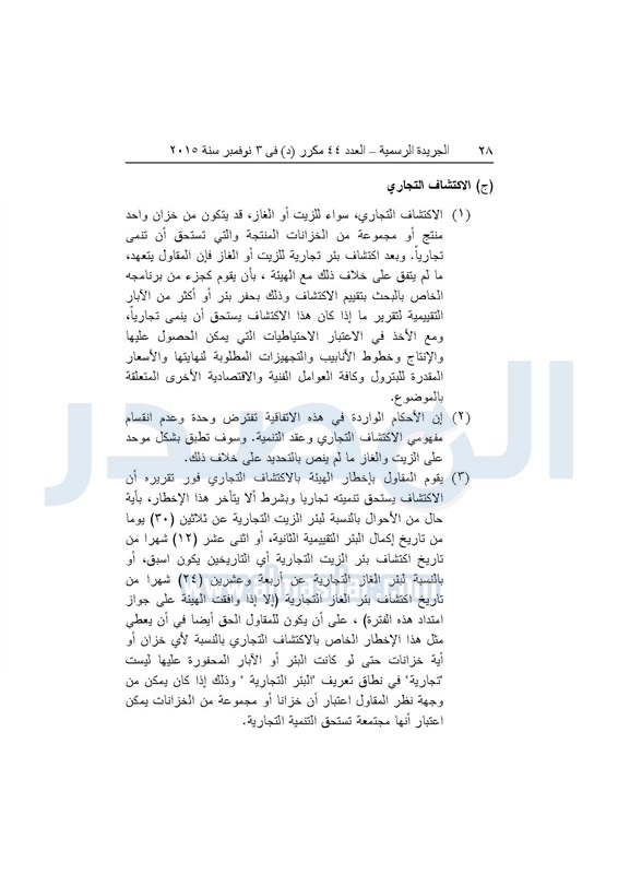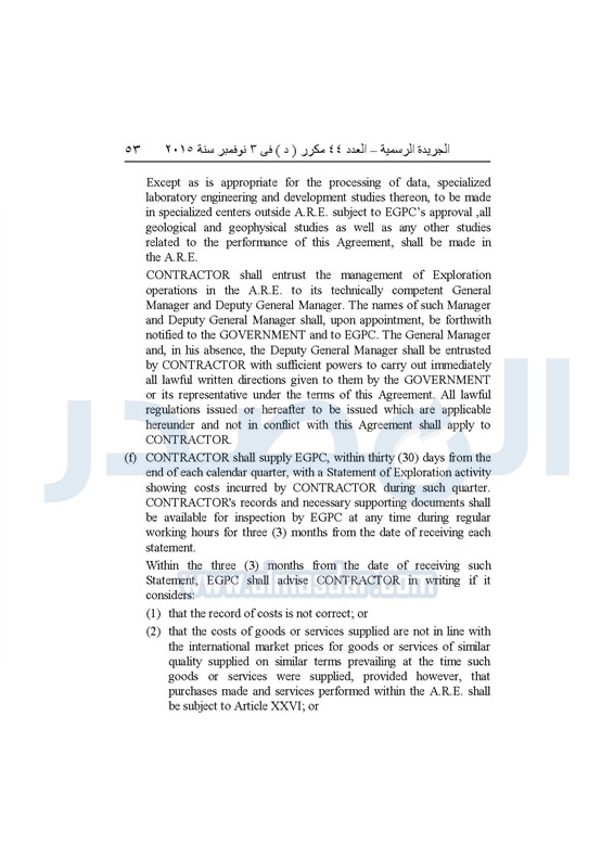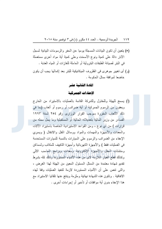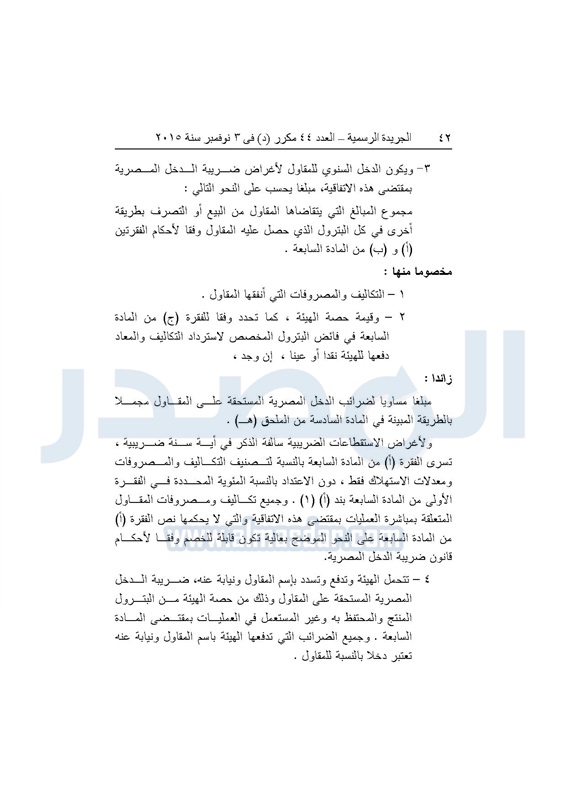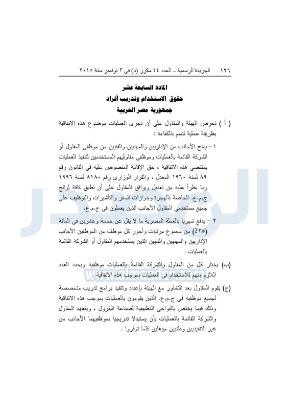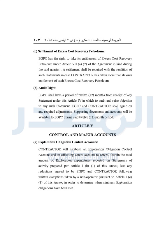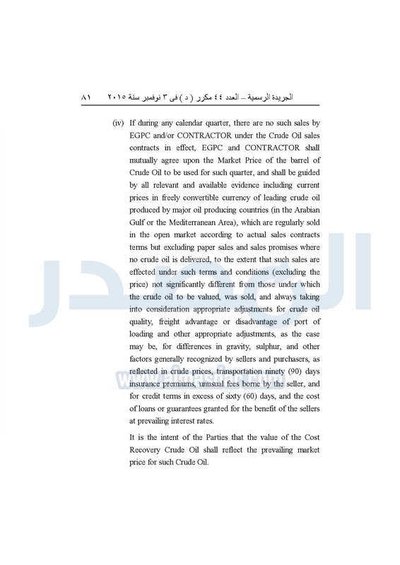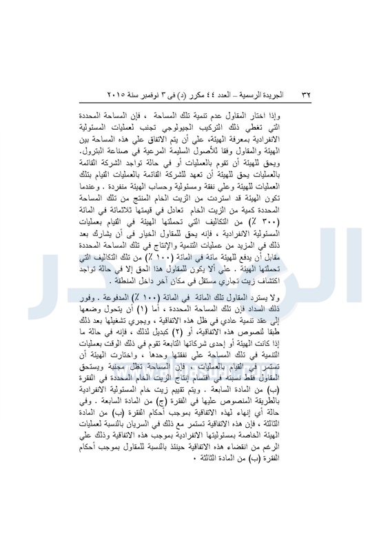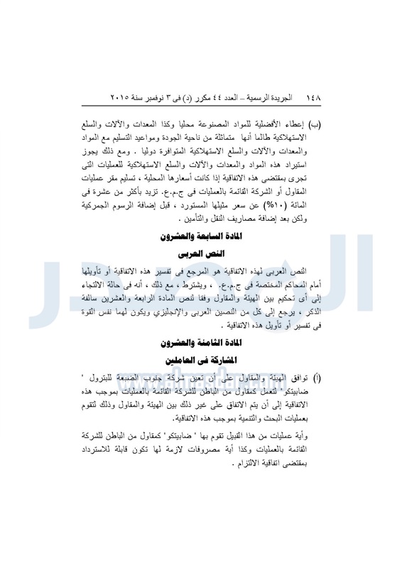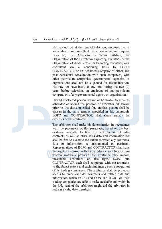 نشرت الجريدة الرسمية، في العدد رقم 44 مكرر "د"، الصادر في 3 نوفمبر 2015، قرار رئيس الجمهورية، رقم 108 لسنة 2015، بشأن الترخيص لوزير البترول في التعاقد مع الهيئة المصرية العامة للبترول، وشركة اتش بى اس إنترناشيونال إيجيبت ليمتد "HBS"، للبحث عن البترول واستغلاله في منطقة حليف، بالصحراء الغربية.