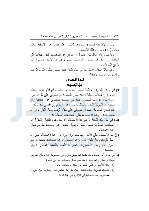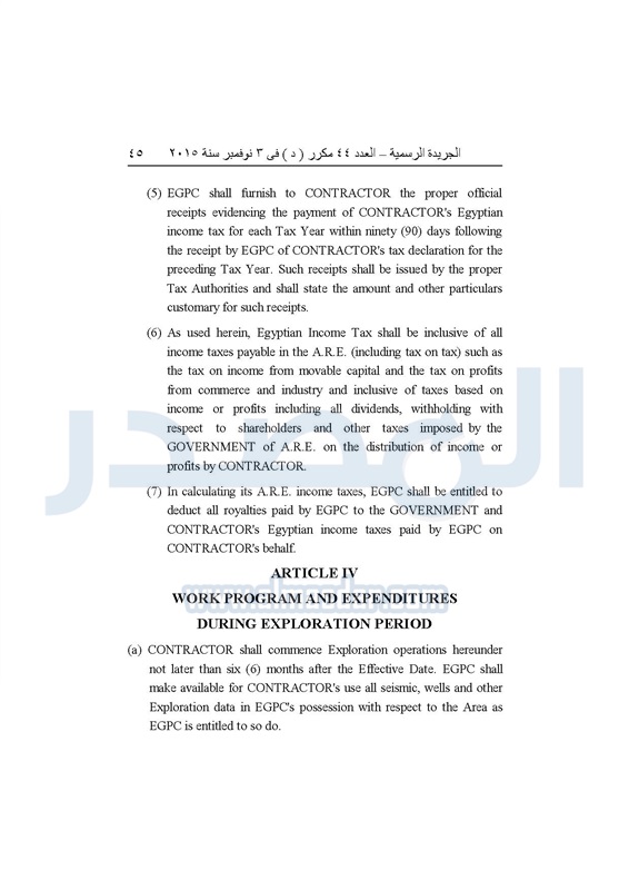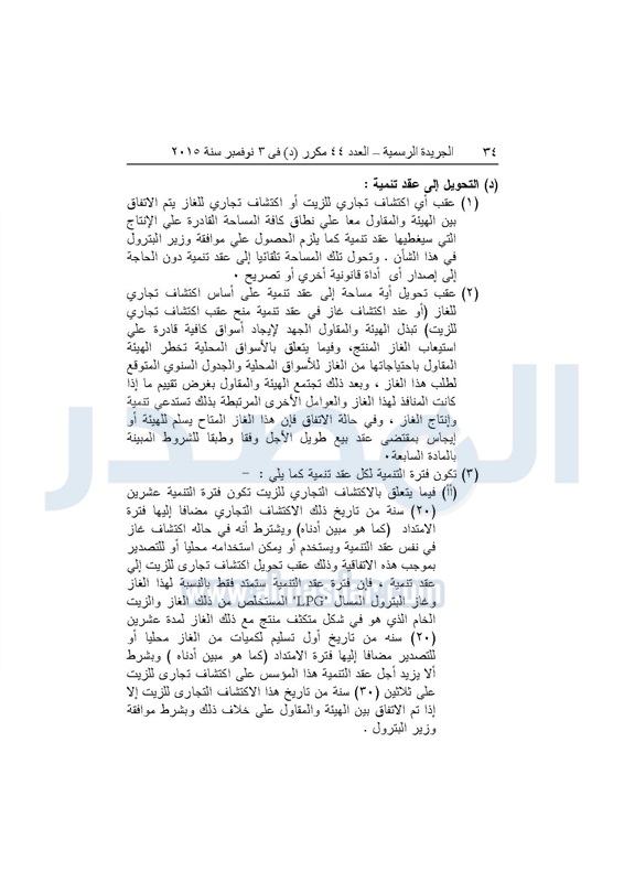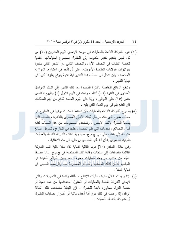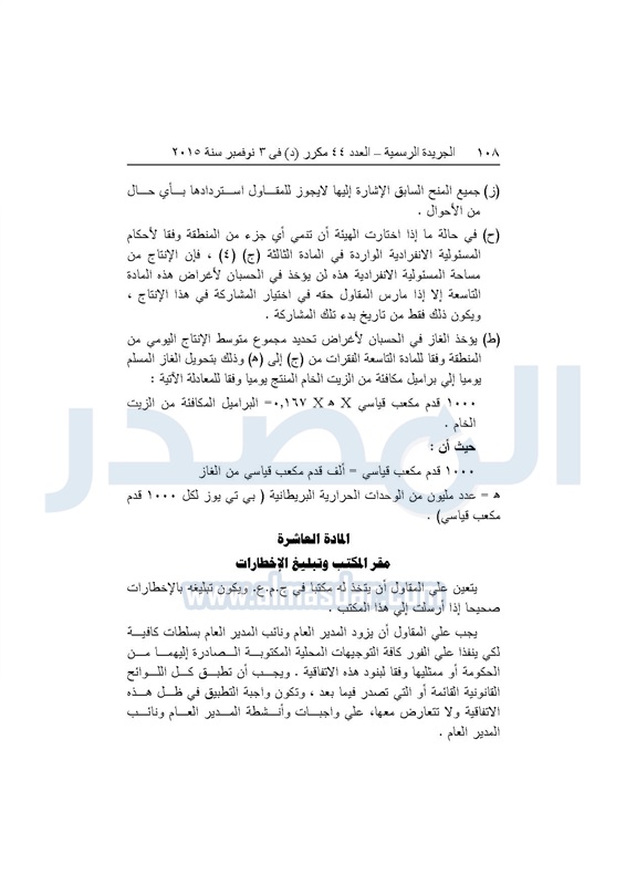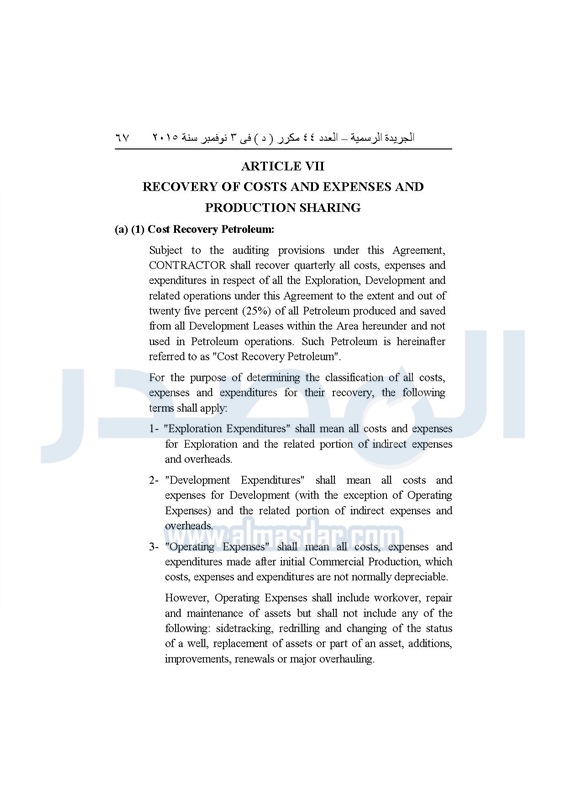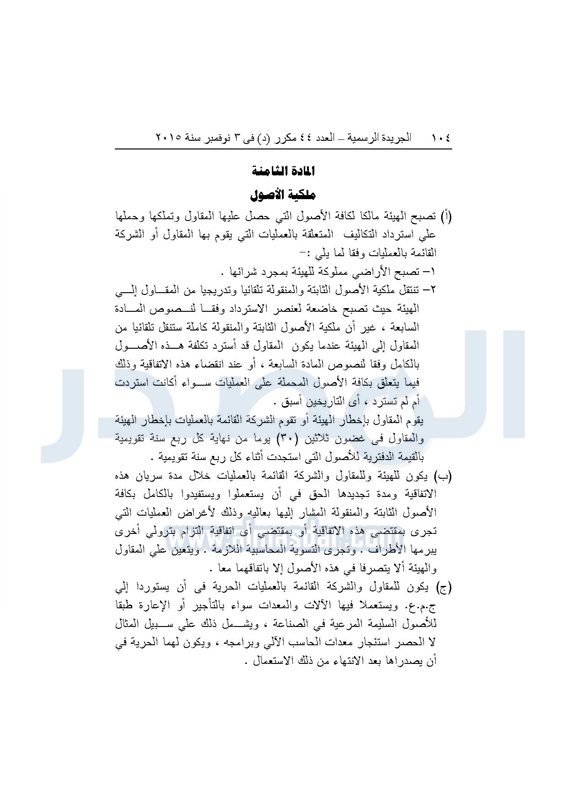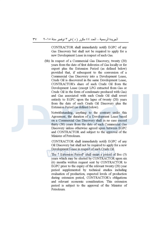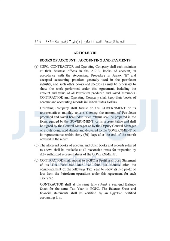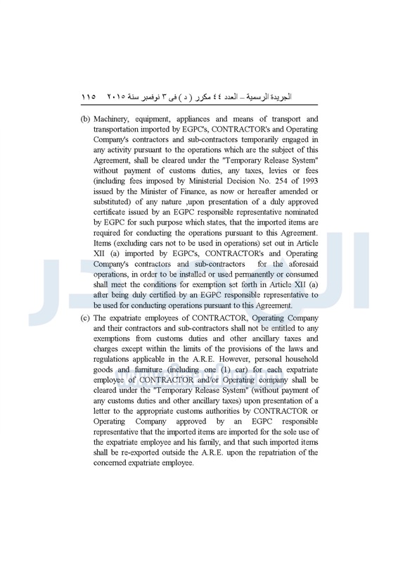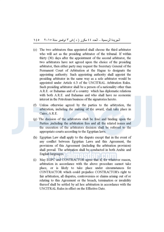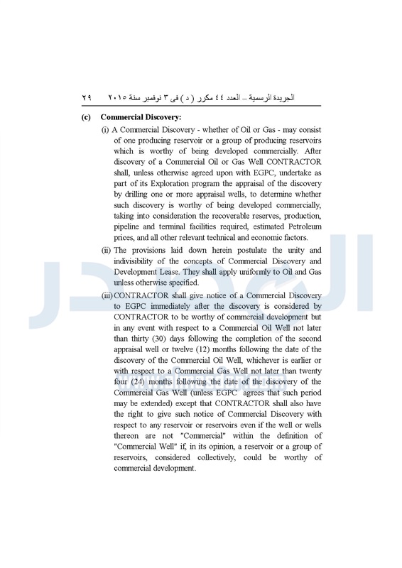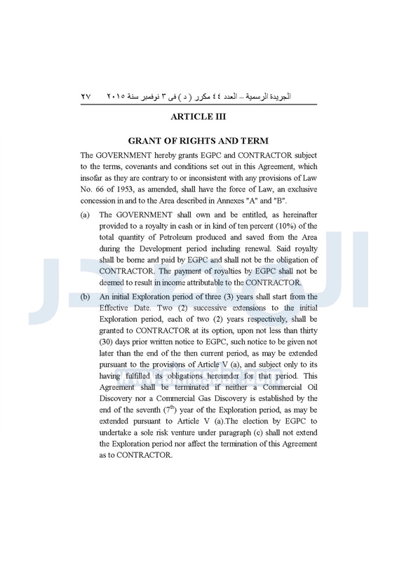 نشرت الجريدة الرسمية، في العدد رقم 44 مكرر "د"، الصادر في 3 نوفمبر 2015، قرار رئيس الجمهورية، رقم 108 لسنة 2015، بشأن الترخيص لوزير البترول في التعاقد مع الهيئة المصرية العامة للبترول، وشركة اتش بى اس إنترناشيونال إيجيبت ليمتد "HBS"، للبحث عن البترول واستغلاله في منطقة حليف، بالصحراء الغربية.