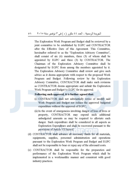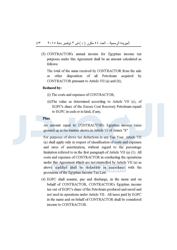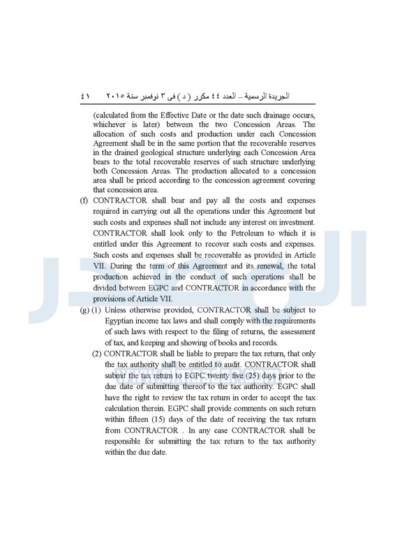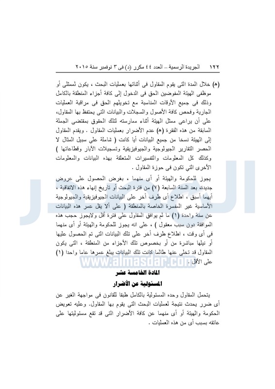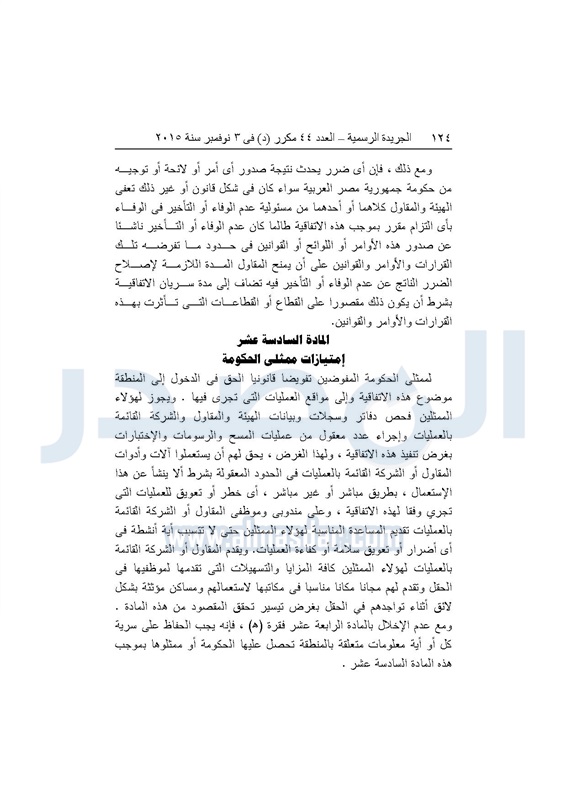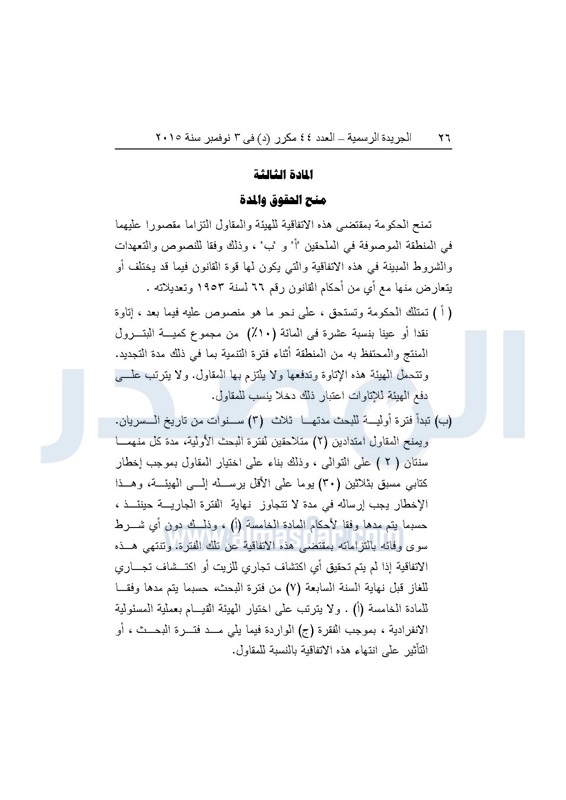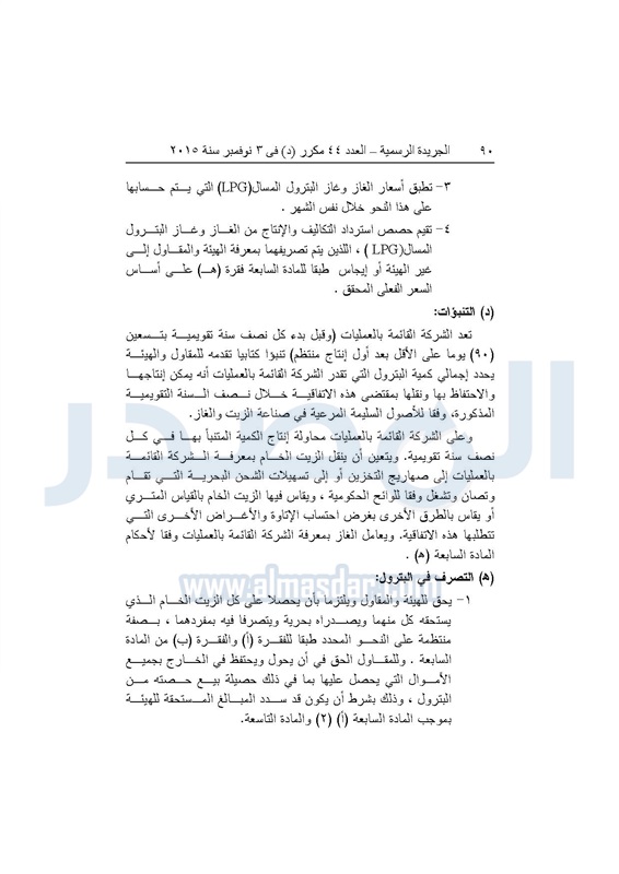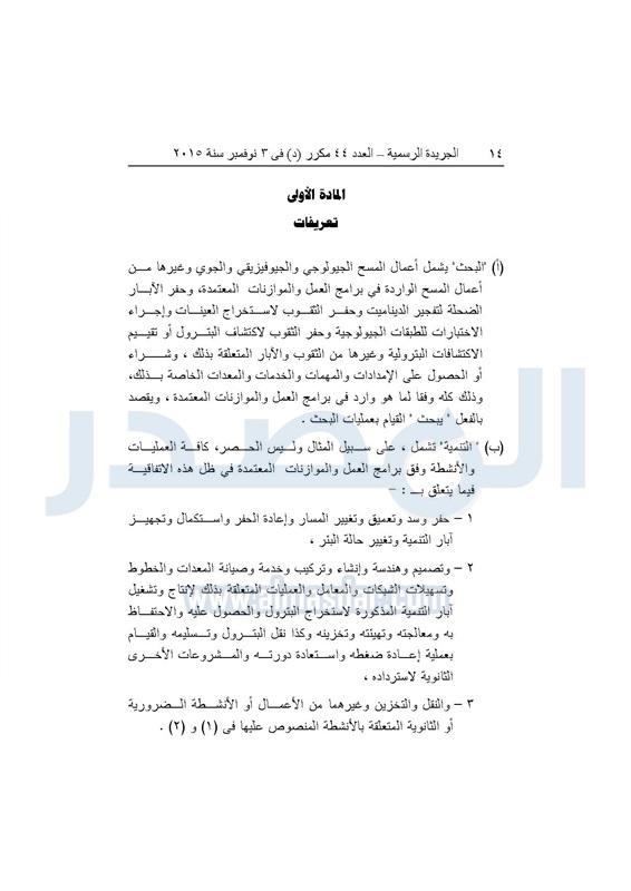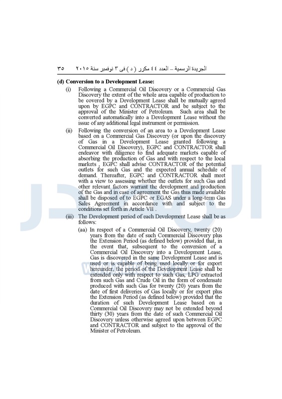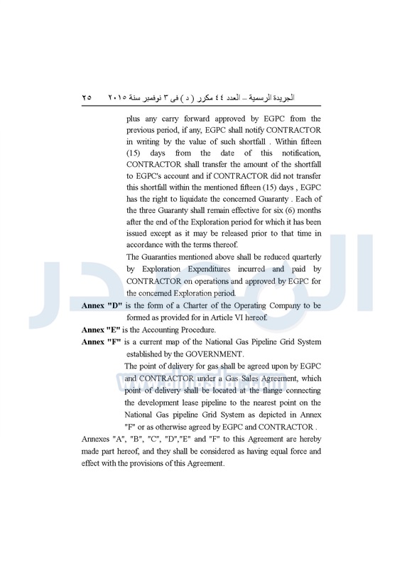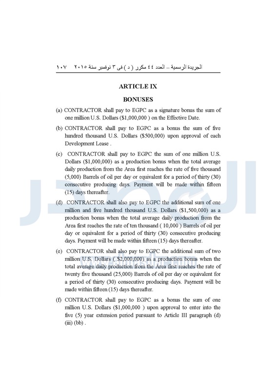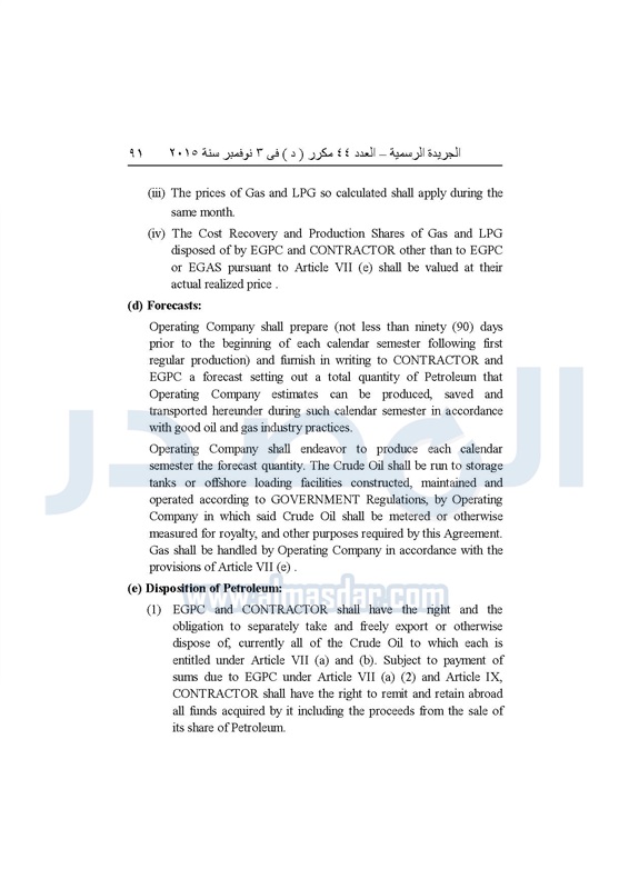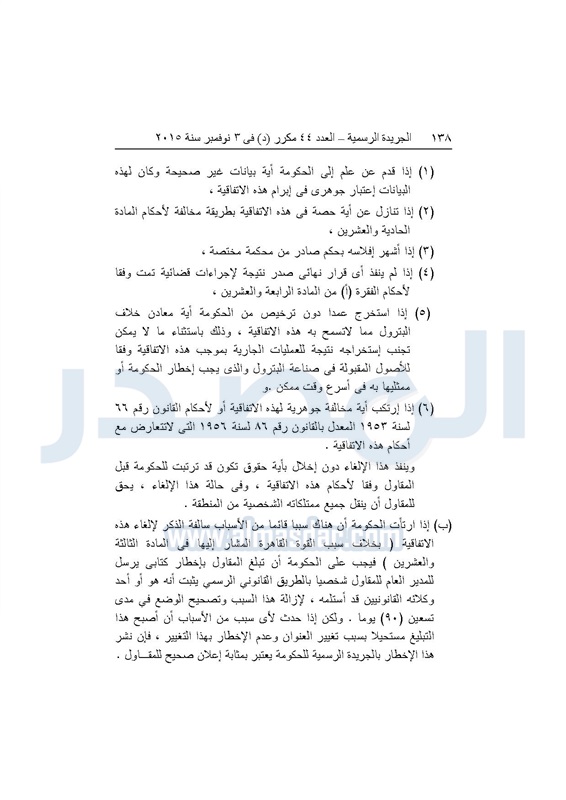 نشرت الجريدة الرسمية، في العدد رقم 44 مكرر "د"، الصادر في 3 نوفمبر 2015، قرار رئيس الجمهورية، رقم 108 لسنة 2015، بشأن الترخيص لوزير البترول في التعاقد مع الهيئة المصرية العامة للبترول، وشركة اتش بى اس إنترناشيونال إيجيبت ليمتد "HBS"، للبحث عن البترول واستغلاله في منطقة حليف، بالصحراء الغربية.