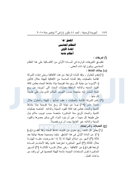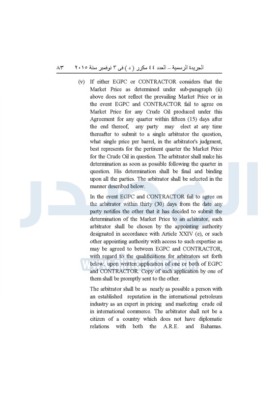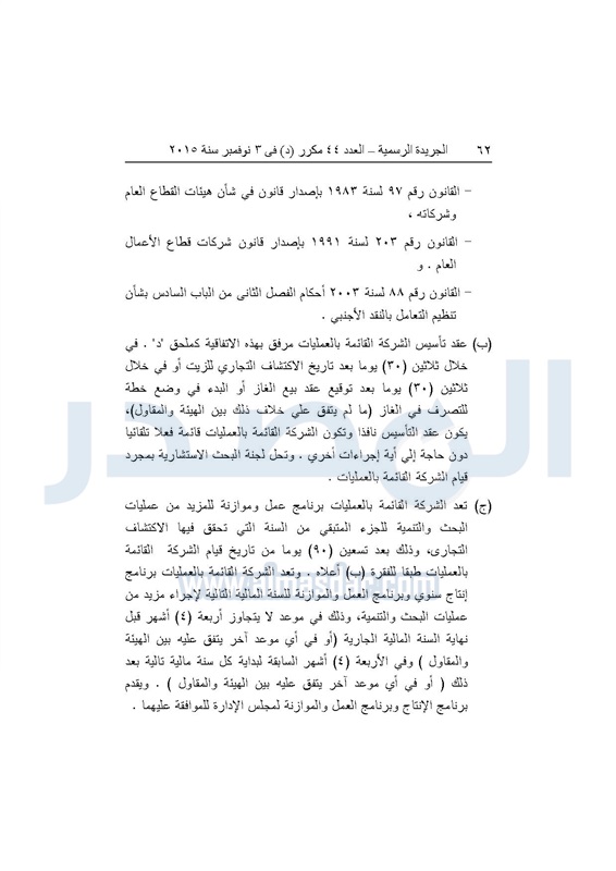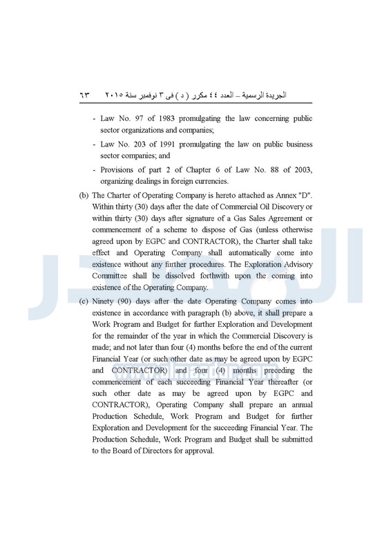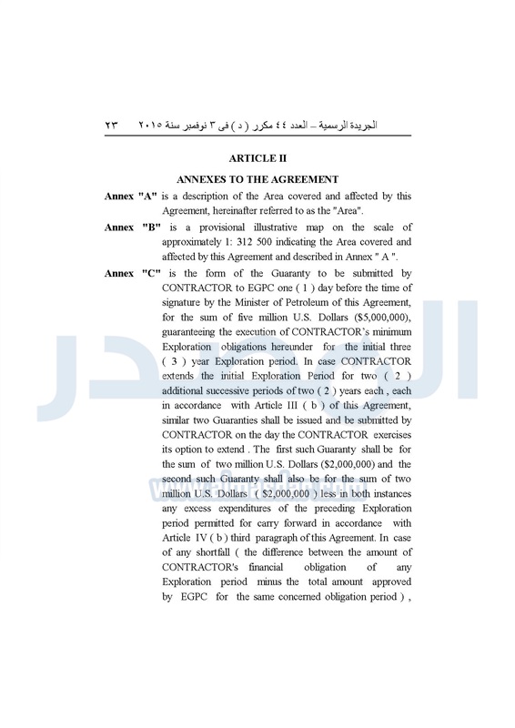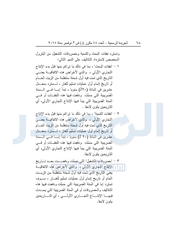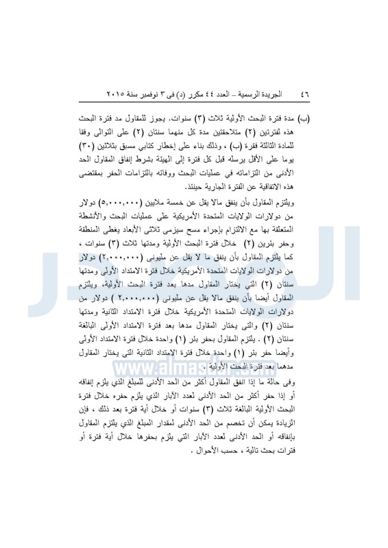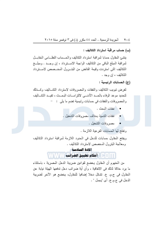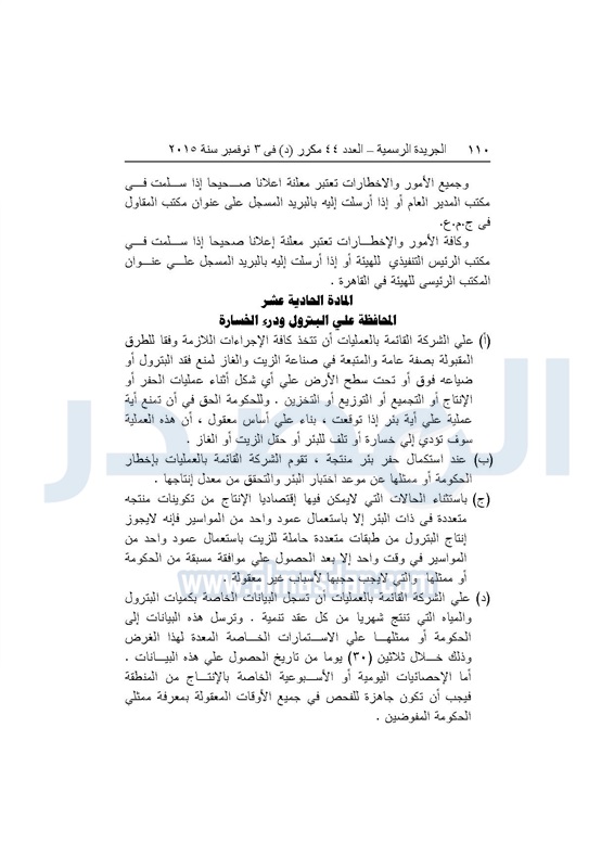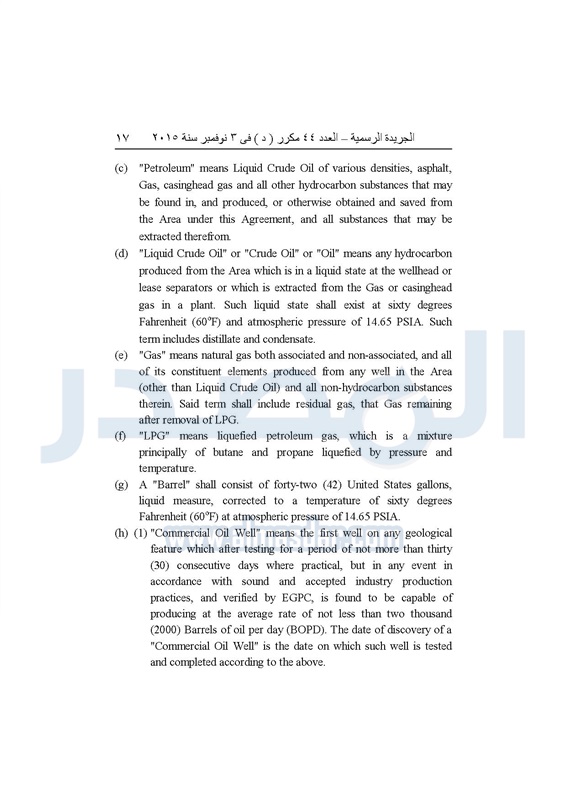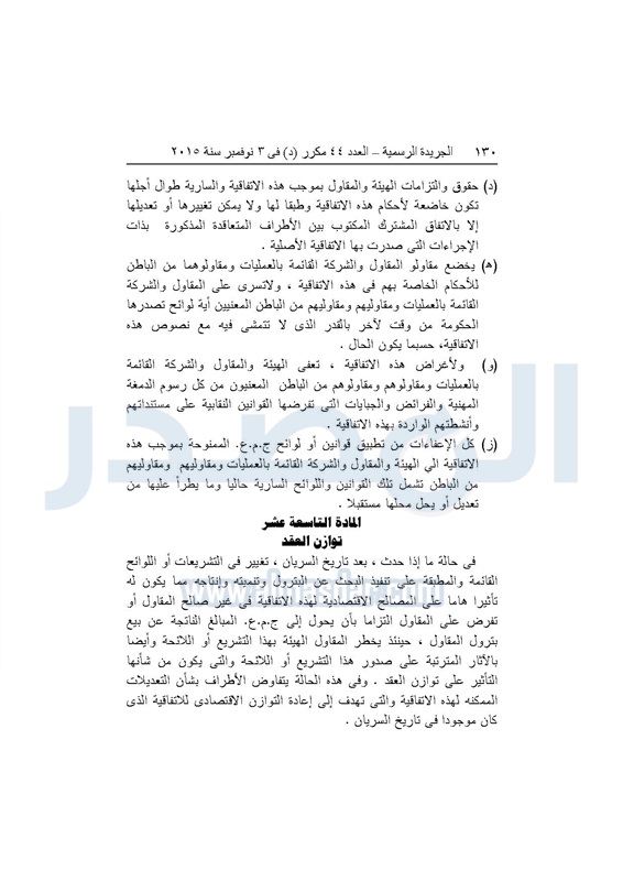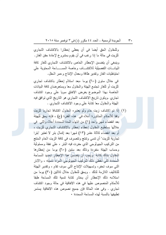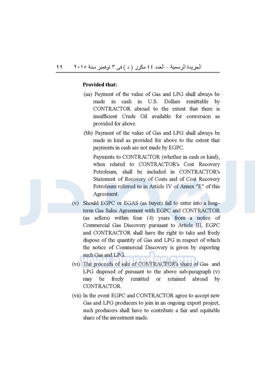 نشرت الجريدة الرسمية، في العدد رقم 44 مكرر "د"، الصادر في 3 نوفمبر 2015، قرار رئيس الجمهورية، رقم 108 لسنة 2015، بشأن الترخيص لوزير البترول في التعاقد مع الهيئة المصرية العامة للبترول، وشركة اتش بى اس إنترناشيونال إيجيبت ليمتد "HBS"، للبحث عن البترول واستغلاله في منطقة حليف، بالصحراء الغربية.