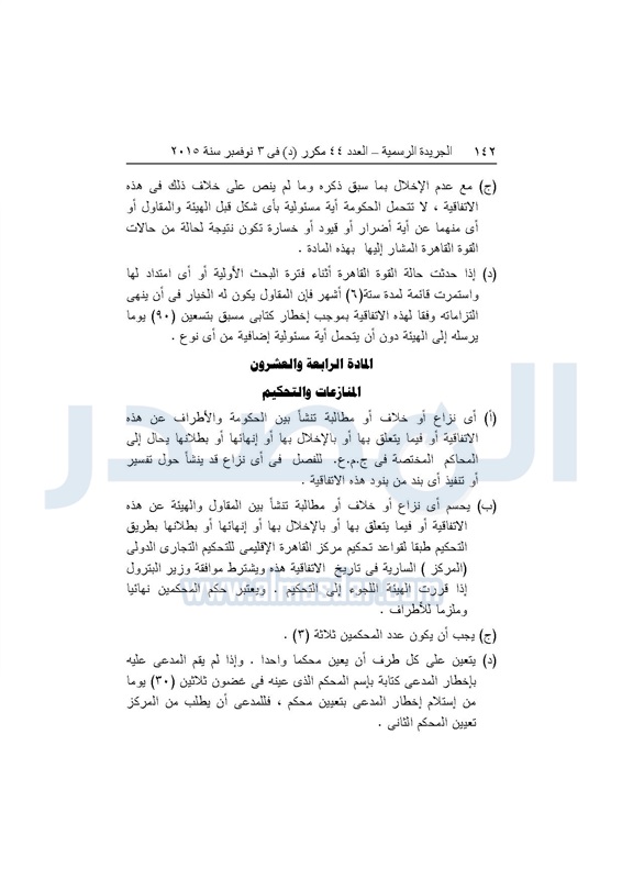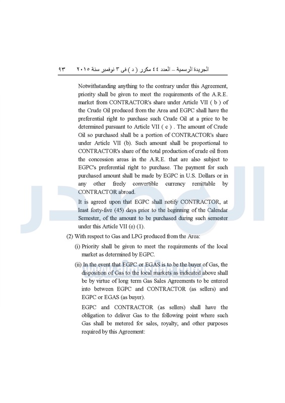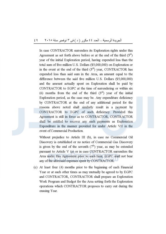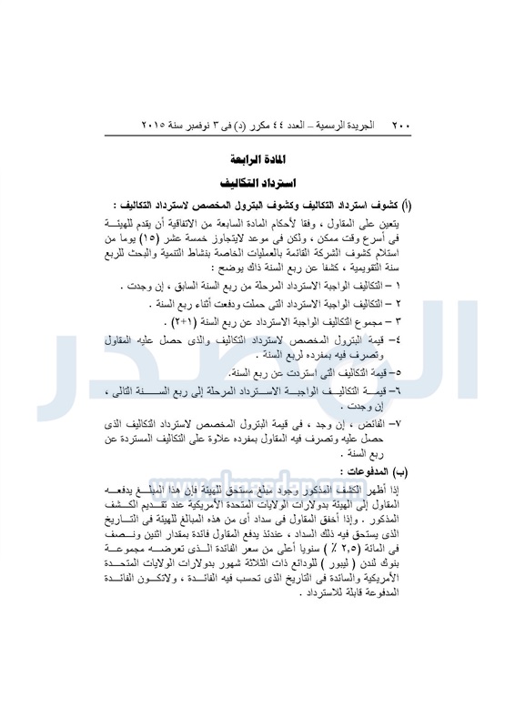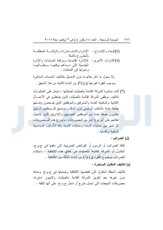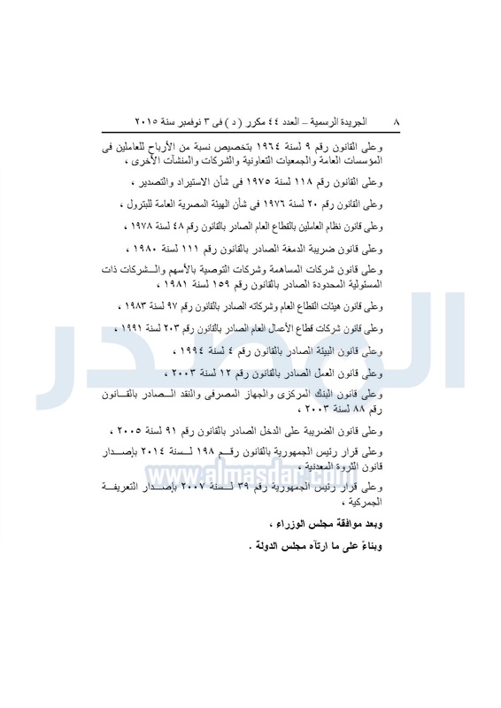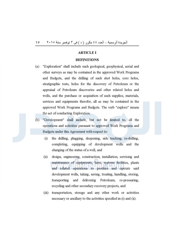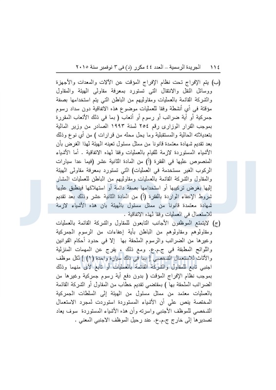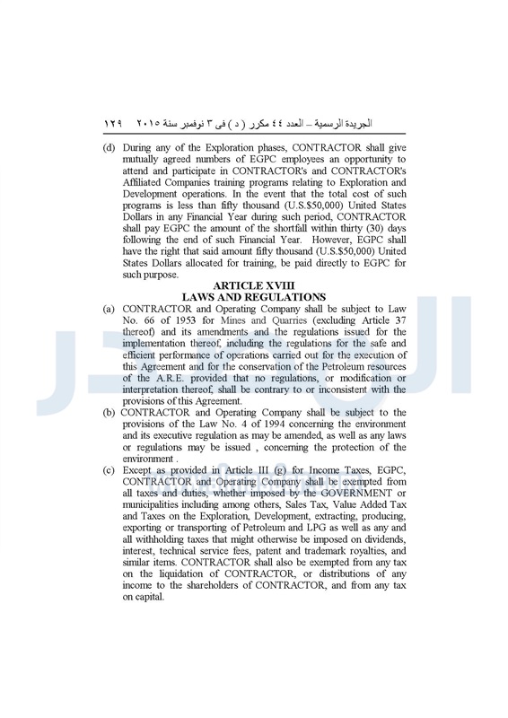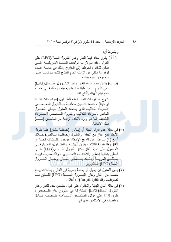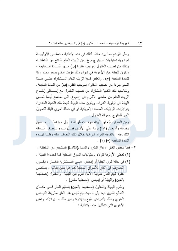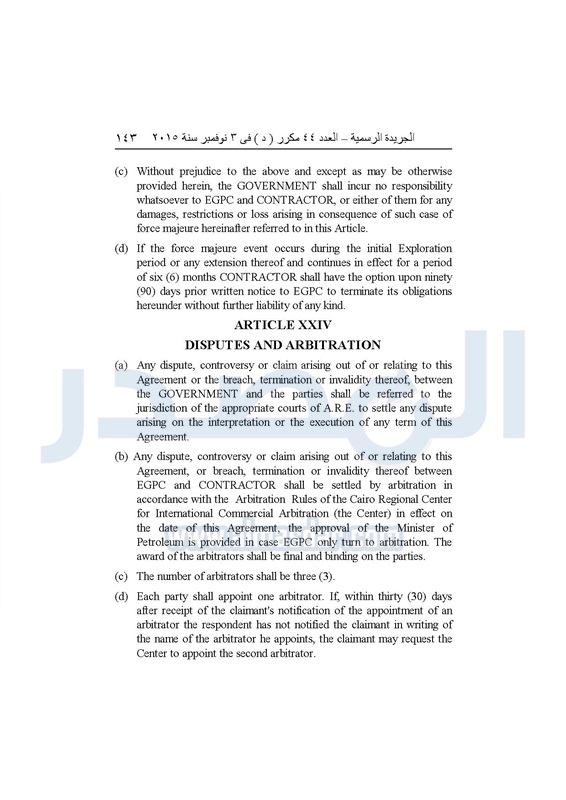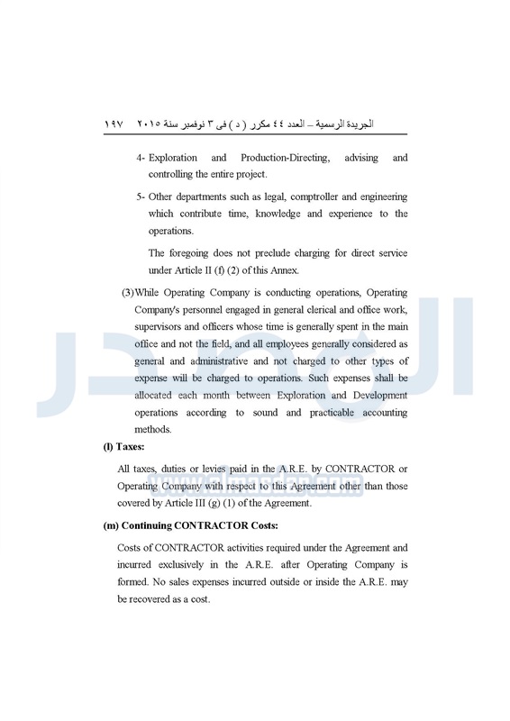 نشرت الجريدة الرسمية، في العدد رقم 44 مكرر "د"، الصادر في 3 نوفمبر 2015، قرار رئيس الجمهورية، رقم 108 لسنة 2015، بشأن الترخيص لوزير البترول في التعاقد مع الهيئة المصرية العامة للبترول، وشركة اتش بى اس إنترناشيونال إيجيبت ليمتد "HBS"، للبحث عن البترول واستغلاله في منطقة حليف، بالصحراء الغربية.