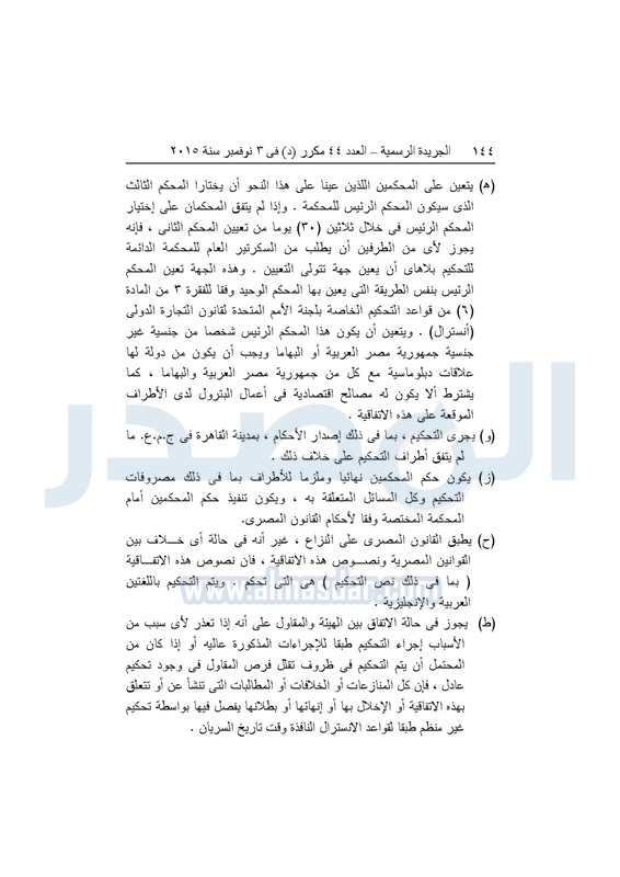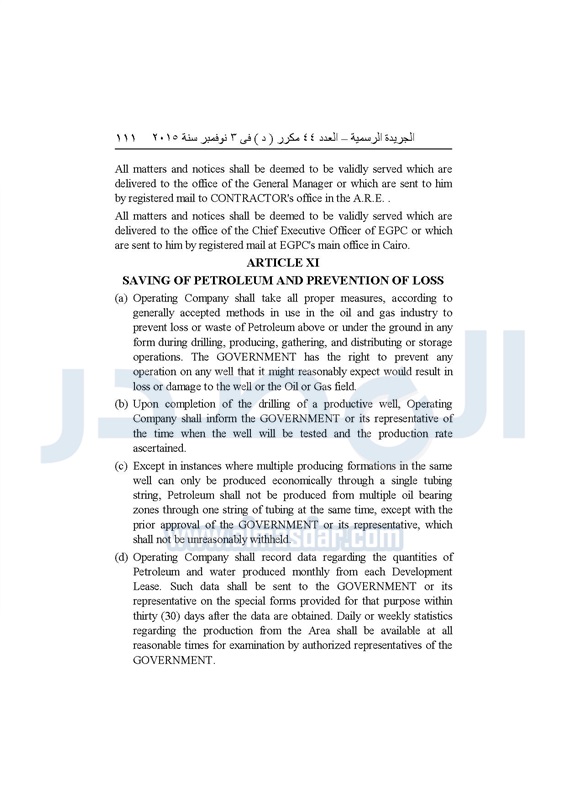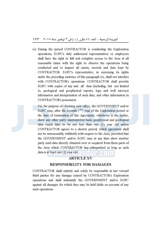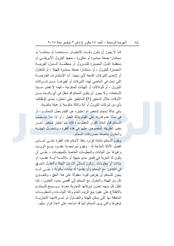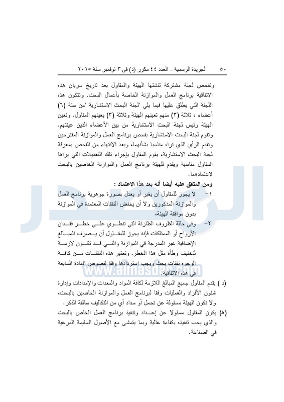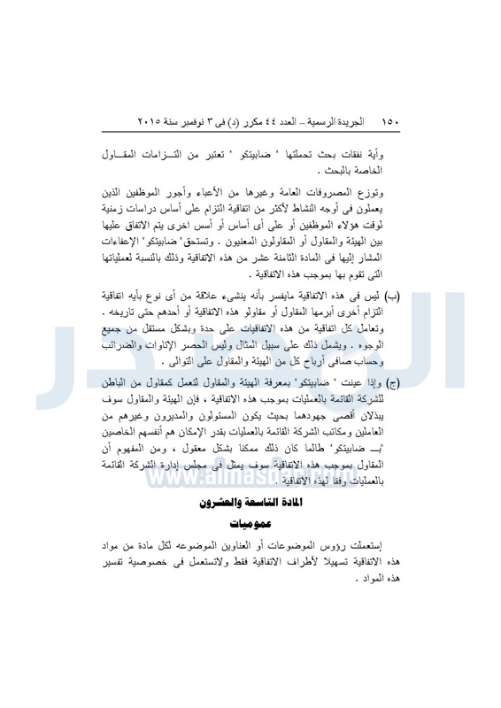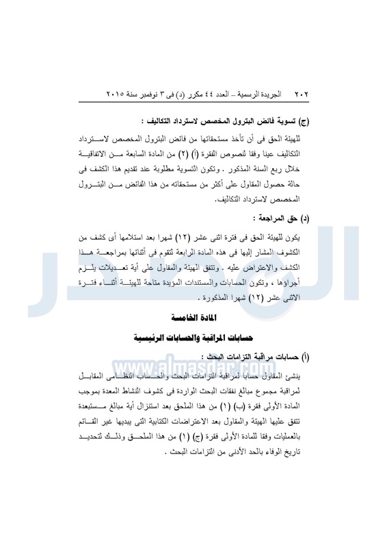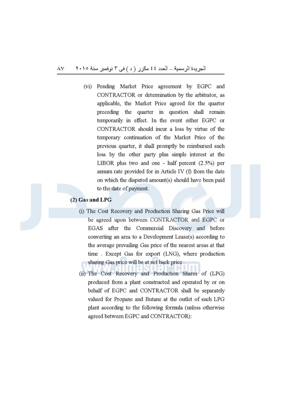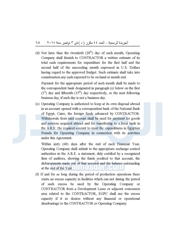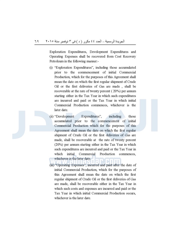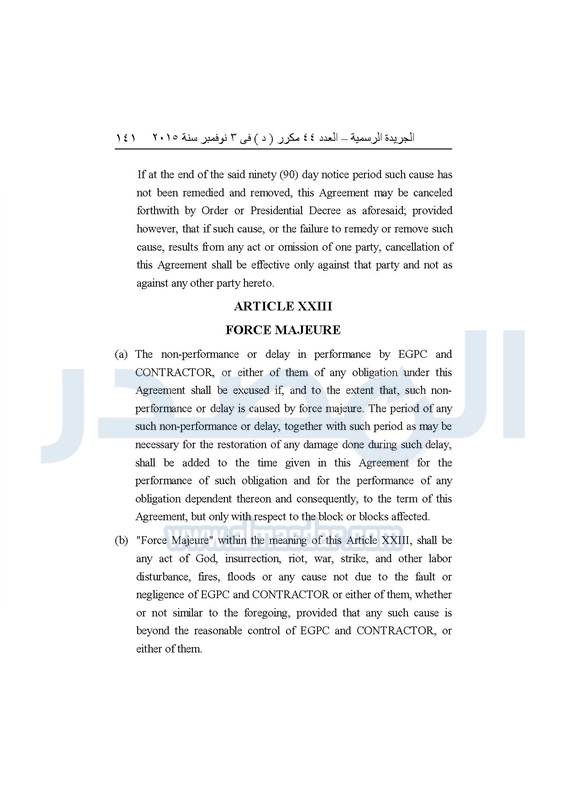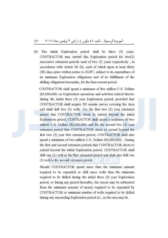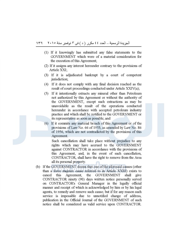 نشرت الجريدة الرسمية، في العدد رقم 44 مكرر "د"، الصادر في 3 نوفمبر 2015، قرار رئيس الجمهورية، رقم 108 لسنة 2015، بشأن الترخيص لوزير البترول في التعاقد مع الهيئة المصرية العامة للبترول، وشركة اتش بى اس إنترناشيونال إيجيبت ليمتد "HBS"، للبحث عن البترول واستغلاله في منطقة حليف، بالصحراء الغربية.