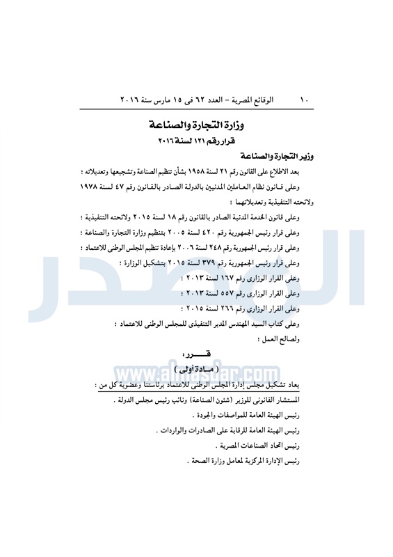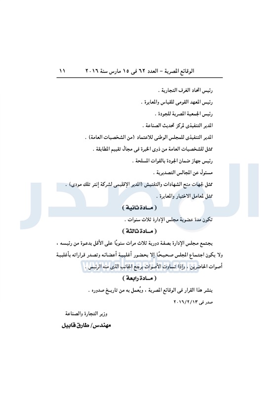 استثمار "قابيل" يقرر إعادة تشكيل المجلس الوطنى للاعتماد الثلاثاء 15 مارس 2016 - 10:03 ص 3/15/2016 10:03:02 AM طارق قابيل وزير التجارة والصناعة المصدر - خاص طباعة شارك نشرت الوقائع المصرية في العدد رقم 62، الصادر في 15 مارس 2016، قرار وزارة التجارة والصناعة، رقم 121 لسنة 2016، بشأن إعادة تشكيل إدارة المجلس الوطنى للإعتماد .لقراءة القرار: طباعة شارك وزير التجارة والصناعة طارق قابيل الوقائع المصرية المجلس الوطنى التجارة والصناعة تابع المصدر علي جوجل نيوز تطبيق نبض