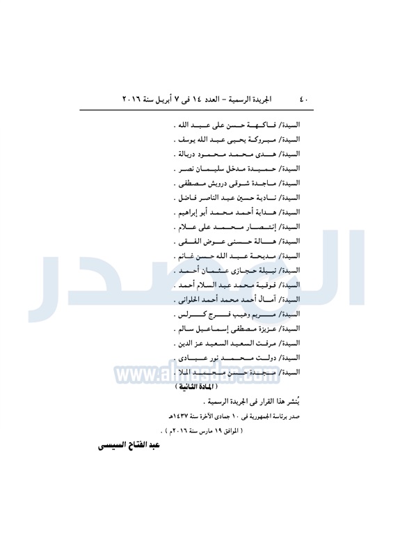 "الجريدة الرسمية" تنشر قرار السيسى بمنح الأوسمة والأنواط للأمهات المثاليات