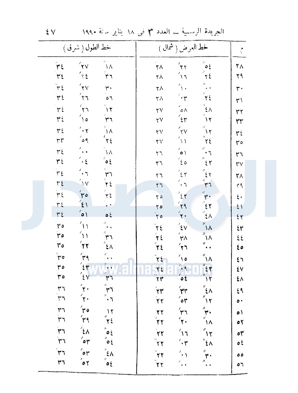 الخريطة التي اعتمدتها الأمم المتحدة في 16 نوفمبر 1973. ضمن النطاق الجغرافي(XXVIII) الجزر تقع جغرافياً و طبقاً للقانون الدولي واتفاقية الأمم المتحدة لقانون البحار الصادر من قبل الجمعية العامة للأمم المتحدة، بموجب القرار 3067 للسعودية.