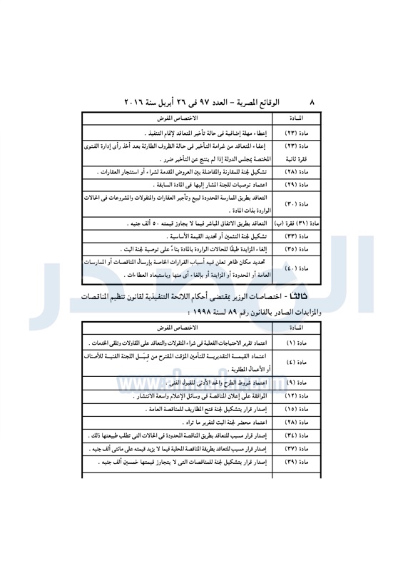 نشرت الوقائع المصرية في العدد رقم97، الصادر في 26 أبريل 2016، قرار وزارة القوى العاملة رقم 116 لسنة 2016، بشأن تفويض رئيس الإدارة المركزية للأمانة العامة فى مباشرة إختصاصات وزير القوى العاملة الواردة فى المواد الملحقة بهذا القرار والمنصوص عليها فى قانون تنظيم العاملين المدنيين بالدولة الصادرة بالقانون رقم 47 لسنة 1978 وتعديلاتة، وقانون تنظيم المناقصات والمزايدات الصادر بالقانون رقم 89 لسنة 1998 وتعديلاتة، واللئحة المالية للميزانية والحسابات ولائحة المخازن . وإلغاء كل نص او قرار يخالف هذا القرار الصادر .