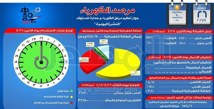يذكر أن اللون الأخضر لمؤشر حالة الحمل يعني أن الحالة آمنة ، أما اللون البرتقالي أو الأصفر فيشيران إلى وضع الإنذار الذي يفيد بأن استهلاك الشبكة في تزايد ويوجه نداء للمشاركة في ترشيد الاستهلاك واللون الأحمر يفيد بأننا في حاجة ماسة لترشيد الاستهلاك لتوفير التغذية الكهربائية اللازمة.