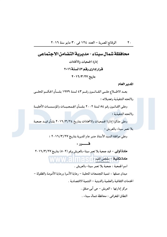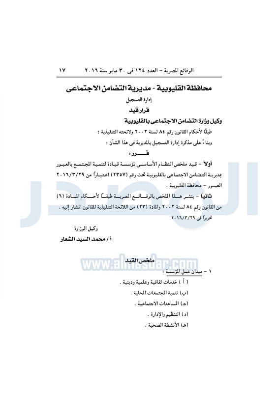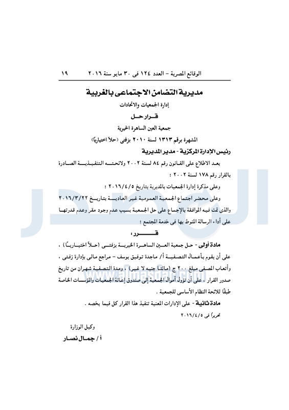 محافظات "التضامن" تقيد عددًا من الجمعيات وتحل أخرى الإثنين 30 مايو 2016 - 11:52 ص 5/30/2016 11:52:00 AM وزارة التضامن الإجتماعى ـ صورة أرشيفية المصدر - خاص طباعة شارك نشرت الوقائع المصرية، في العدد رقم 124، الصادر في 30 مايو 2016، قرارات وزارة التضامن الاجتماعي، ومديريات التضامن في عدد من المحافظات، بشأن قيد وحل بعض الجمعيات.لقراءة القرار: طباعة شارك وزارة التضامن الاجتماعى وزارة التضامن القيد الجمعيات الأهلية تابع المصدر علي جوجل نيوز تطبيق نبض