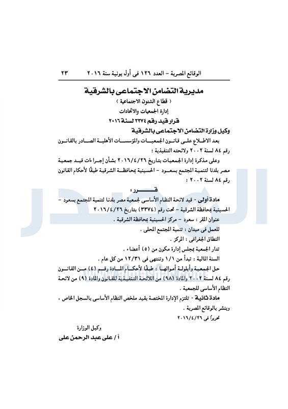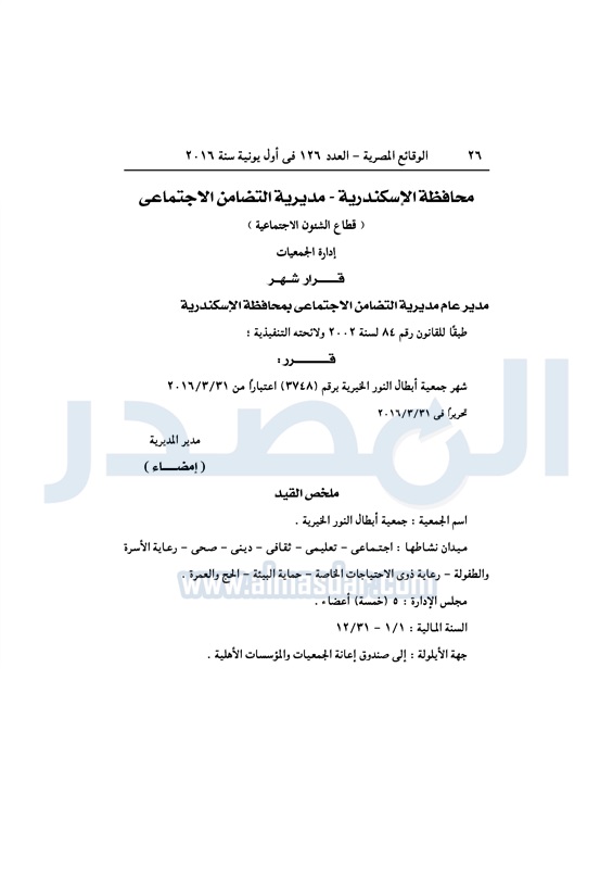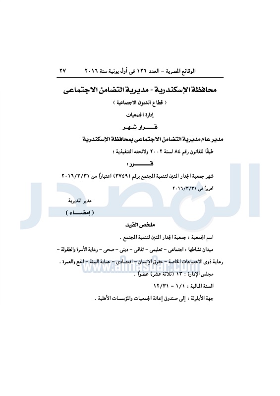 محافظات "التضامن" تقيد عددًا من الجمعيات في المحافظات الأربعاء 01 يونيو 2016 - 11:33 ص 6/1/2016 11:33:00 AM وزارة التضامن الاجتماعي - صورة أرشيفية المصدر - خاص طباعة شارك نشرت الوقائع المصرية، في العدد رقم 126، الصادر في 1 يونيو 2016، قرارات وزارة التضامن الاجتماعي، ومديريات التضامن في عدد من المحافظات، بشأن قيد وحل بعض الجمعيات.لقراءة القرارات: طباعة شارك مديريات التضامن جمعيات الوقائع المصرية المحافظات التضامن الاجتماعي تابع المصدر علي جوجل نيوز تطبيق نبض