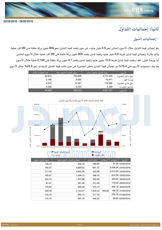"المصدر" تنشر التقرير الأسبوعي لأداء البورصة المصرية
