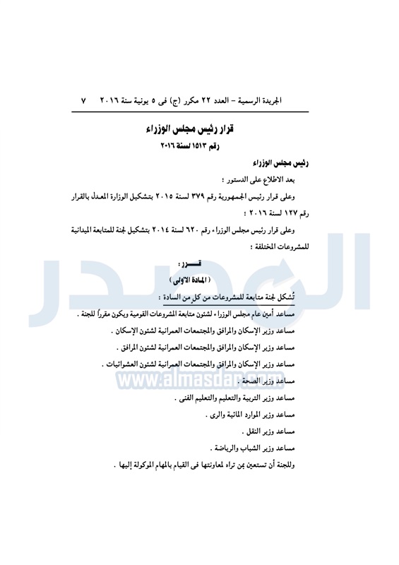 ريادة أعمال رئيس الوزراء يُشكل لجنة لمتابعة للمشروعات الإثنين 06 يونيو 2016 - 02:57 م 6/6/2016 2:57:00 PM شريف إسماعيل رئيس مجلس الوزراء المصدر - خاص طباعة شارك نشرت الجريدة الرسمية، في العدد رقم 22 مكرر "ج"، الصادر في 5 يونيو 2016، قرار رئيس مجلس الوزراء، رقم 1513 لسنة 2016، بشأن تشكيل لجنة متابعة للمشروعات.لقراءة القرار: طباعة شارك لجنة متابعة للمشروعات شريف اسماعيل رئيس الوزراء الجريدة الرسمية تابع المصدر علي جوجل نيوز تطبيق نبض