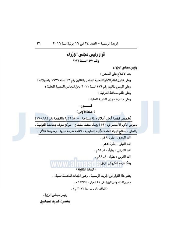عقارات إسماعيل يخصص عدد من الأراضي لجهات مختلفة الخميس 16 يونيو 2016 - 11:38 ص 6/16/2016 11:38:19 AM شريف إسماعيل رئيس مجلس الوزراء المصدر - خاص طباعة شارك نشرت الجريدة الرسمية، في العدد 24، الصادر 16 يونيو 2016، قرارات رئيس مجلس الوزراء، بتخصيص قطع أراضي، لعدد من الجهات المختلفة.لقراءة القرارات: طباعة شارك مجلس الوزراء قطع اراضي شريف اسماعيل العقارات الجريدة الرسمية تابع المصدر علي جوجل نيوز تطبيق نبض