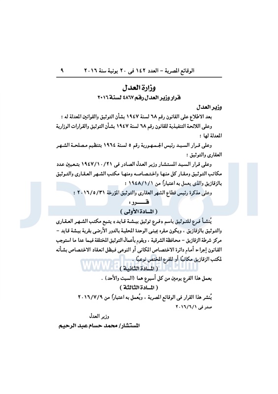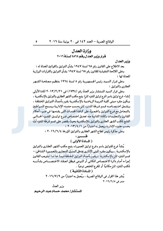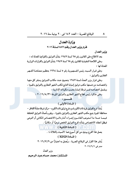 محافظات "العدل" تقرر إنشاء فروع للتوثيق في عدد من المحافظات الإثنين 20 يونيو 2016 - 11:16 ص 6/20/2016 11:16:00 AM وزارة العدل ـ صورة أرشيفية المصدر - خاص طباعة شارك نشرت الوقائع المصرية، في العدد رقم 142، الصادر في 20 يونيو 2016، قرارات وزارة العدل، بإنشاء فروع للتوثيق بعدد من المحافظات. لقراءة القرار: طباعة شارك فرع توثيق الوقائع المصرية المحافظات العدل تابع المصدر علي جوجل نيوز تطبيق نبض