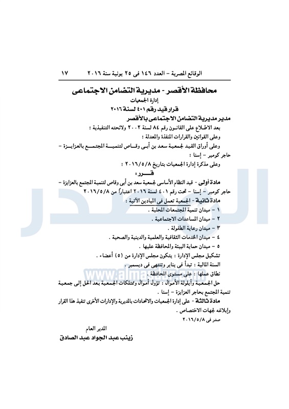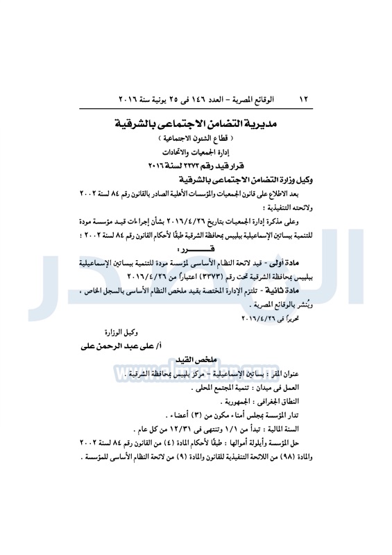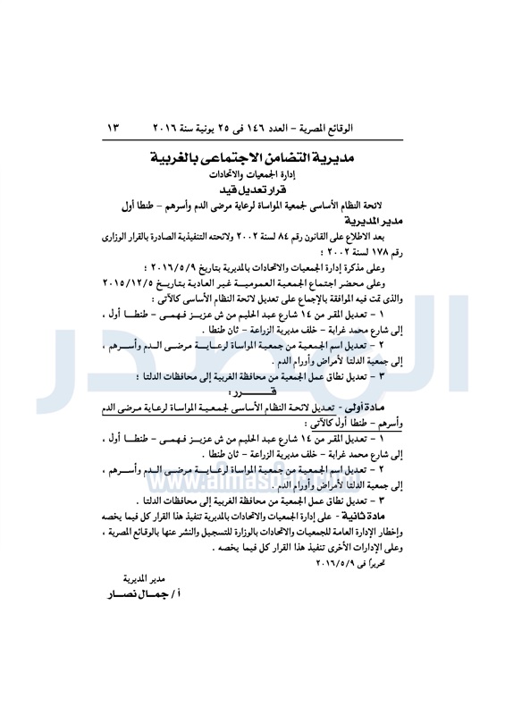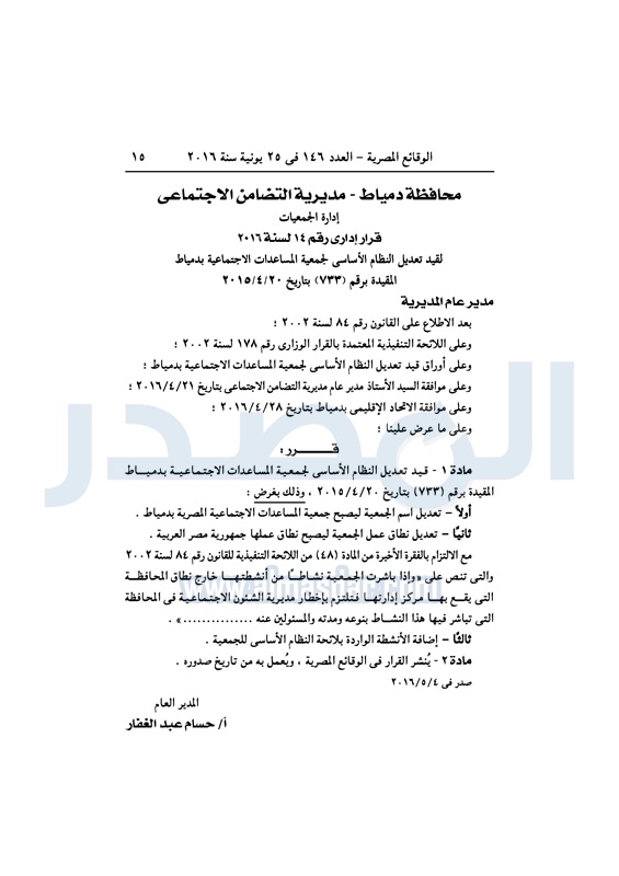 أخبار مصر التضامن تقيد عددًا من الجمعيات في المحافظات الأحد 26 يونيو 2016 - 11:29 ص 6/26/2016 11:29:00 AM وزارة التضامن الاجتماعي - صورة أرشيفية وكالات طباعة شارك نشرت الوقائع المصرية، في العدد رقم 146، الصادر في 25 يونيو 2016، قرارات وزارة التضامن الاجتماعي، ومديريات التضامن في عدد من المحافظات، بشأن قيد وشهر عدد من الجمعيات.لقراءة القرار: طباعة شارك لائحة النظام الأساسي الوقائع المصرية المحافظات التضامن الاجتماعي تابع المصدر علي جوجل نيوز تطبيق نبض