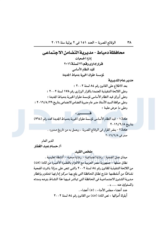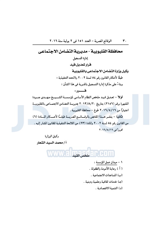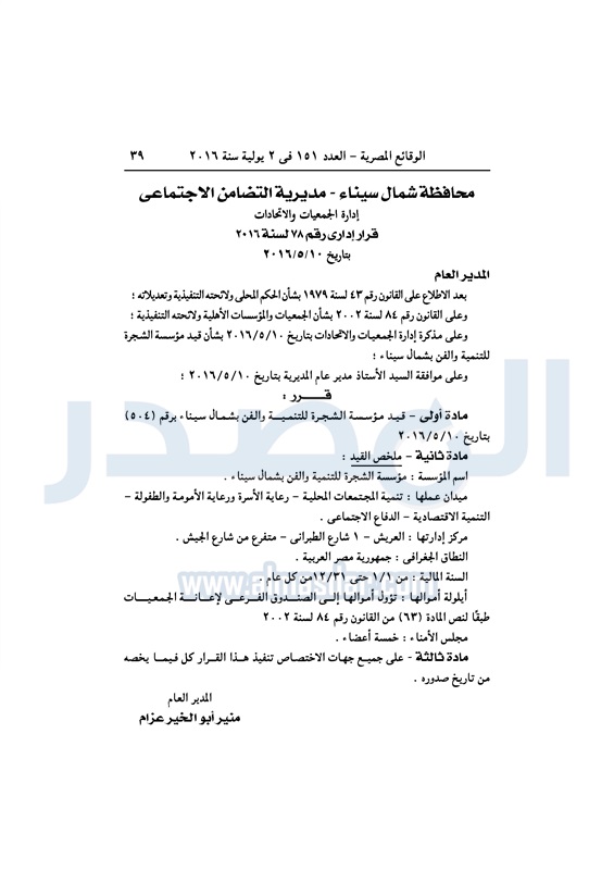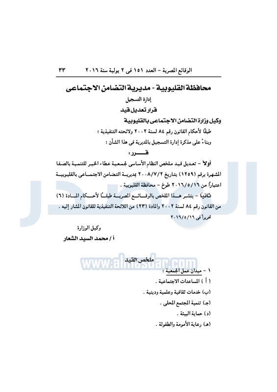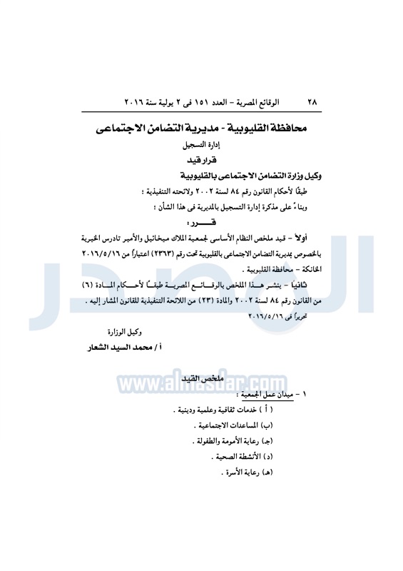 محافظات التضامن تقيد عددًا من الجمعيات في المحافظات الأحد 03 يوليو 2016 - 11:15 ص 7/3/2016 11:15:00 AM التضامن الاجتماعي - صورة أرشيفية المصدر - خاص طباعة شارك نشرت الوقائع المصرية، في العدد رقم 151، الصادر في 2 يوليو 2016، قرارات وزارة التضامن الاجتماعي، ومديريات التضامن في عدد من المحافظات، بشأن قيد وشهر عدد من الجمعيات.لقراءة القرار: طباعة شارك وزارة التضامن مديريات التضامن قرارات جمعيات المحافظات القيد الري التضامن الاجتماعي أخبار مصر تابع المصدر علي جوجل نيوز تطبيق نبض
