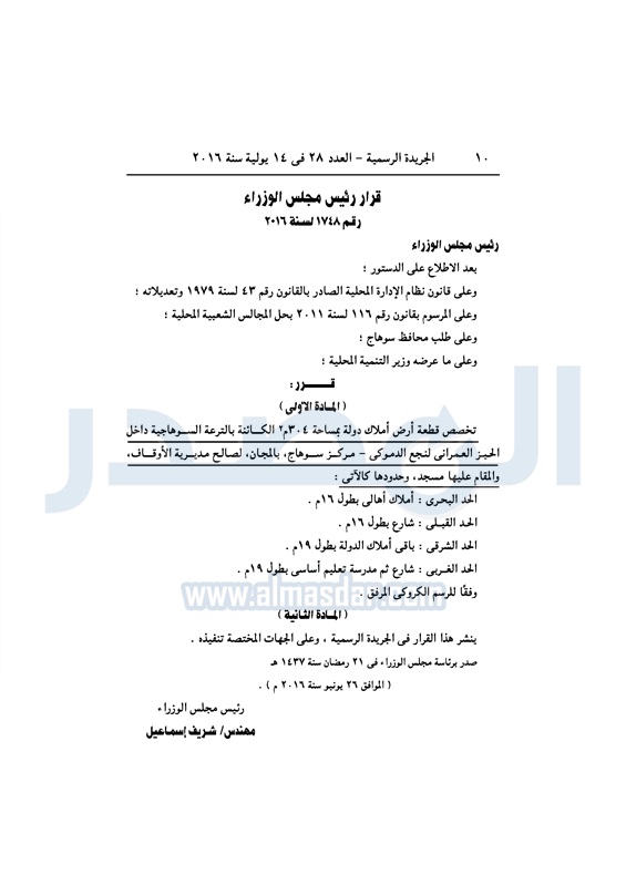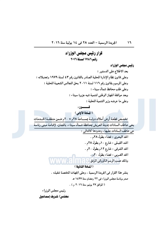 عقارات شريف إسماعيل يخصص قطع أراضي لعدد من الجهات الخميس 14 يوليو 2016 - 10:44 ص 7/14/2016 10:44:39 AM شريف إسماعيل رئيس مجلس الوزراء المصدر - خاص طباعة شارك نشرت الجريدة الرسمية، في العدد رقم 28، الصادر اليوم 14 يوليو 2016، قرارات رئيس مجلس الوزراء، بتخصيص قطع أراضي، لعدد من الجهات المختلفة.لقراءة القرار: طباعة شارك مجلس الوزراء قطع اراضي شريف اسماعيل رئيس الوزراء تخصيص أراضي الجريدة الرسمية تابع المصدر علي جوجل نيوز تطبيق نبض