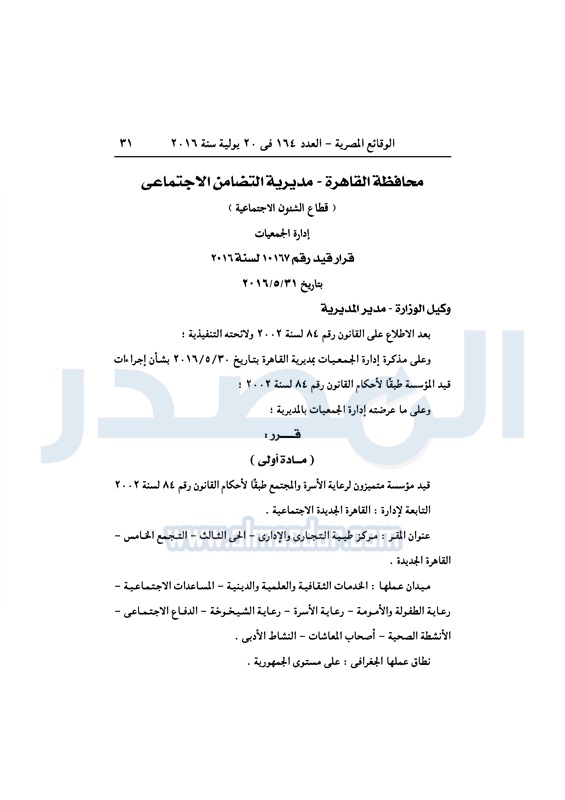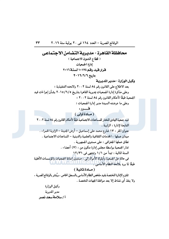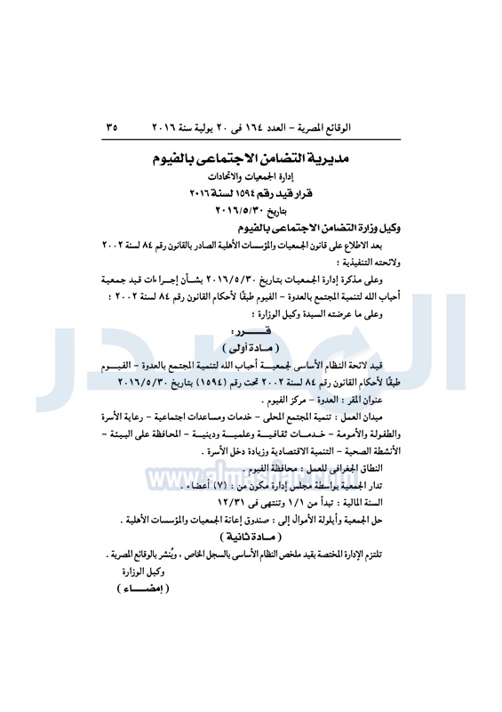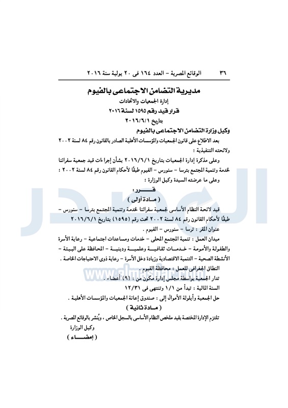 محافظات التضامن تقيد عددًا من الجمعيات في المحافظات الأربعاء 20 يوليو 2016 - 11:08 ص 7/20/2016 11:08:42 AM التضامن الاجتماعي - صورة أرشيفية المصدر - خاص طباعة شارك نشرت الوقائع المصرية، في العدد رقم 164، الصادر اليوم الأربعاء، 20 يوليو 2016، قرارات وزارة التضامن الاجتماعي، ومديريات التضامن في عدد من المحافظات، بشأن قيد وشهر عدد من الجمعيات.لقراءة القرار: طباعة شارك وزارة التضامن الاجتماعى وزارة التضامن مديريات التضامن الوقائع المصرية المديريات المحافظات التضامن الاجتماعي تابع المصدر علي جوجل نيوز تطبيق نبض