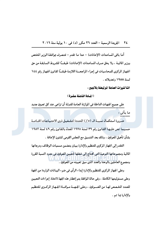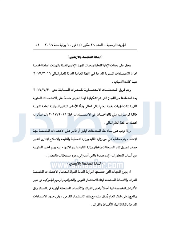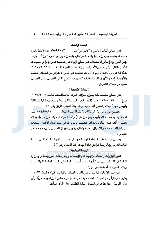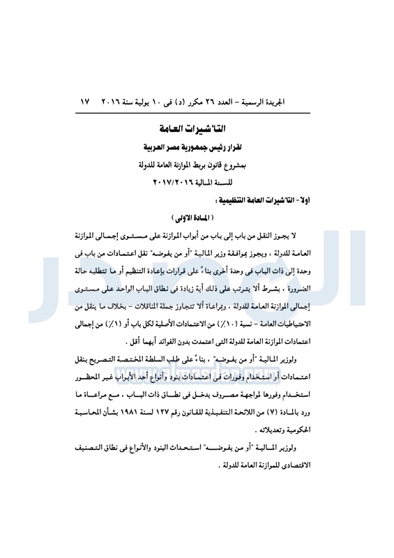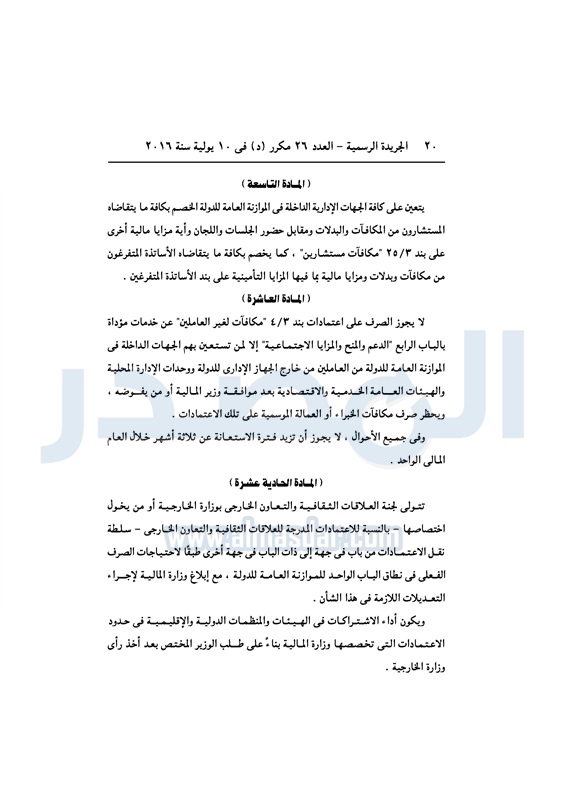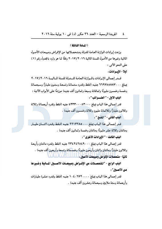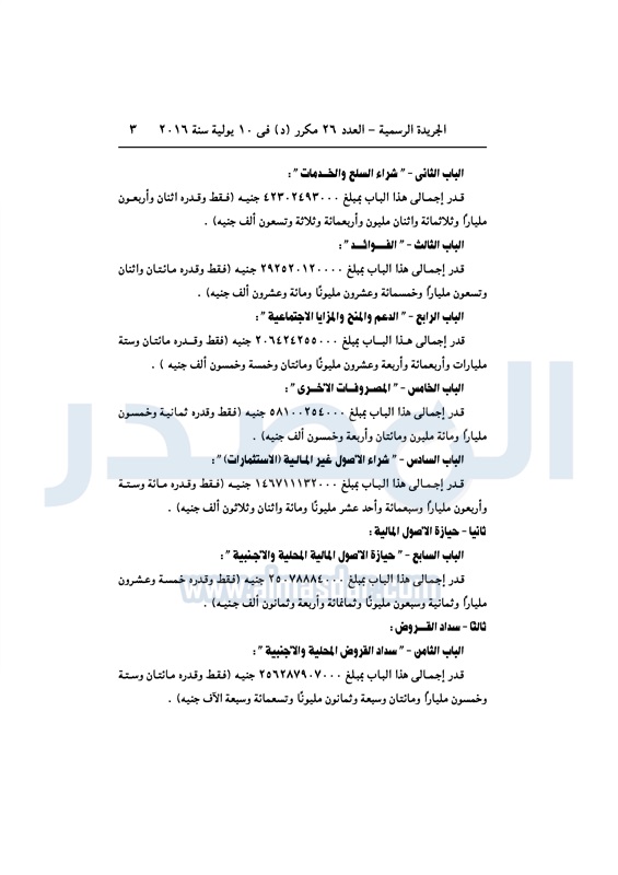 أخبار مصر ننشر قانون الموازنة العامة لمصر بعد إقرارها الأربعاء 20 يوليو 2016 - 11:48 ص 7/20/2016 11:48:00 AM علي عبد العال - رئيس البرلمان المصدر - خاص طباعة شارك نشرت الجريدة الرسمية، في العدد 266 مكرر "د"، الصادر في 10 يوليو 2016، قانون رقم 8 لسنة 2016، بربط الموازنة العامة للدولة، للسنة المالية 2016/2017. لقراءة القرار: طباعة شارك موازنة الدولة الموازنة العامة للدولة الموازنة العامة العام المالي السنة المالية الجريدة الرسمية تابع المصدر علي جوجل نيوز تطبيق نبض