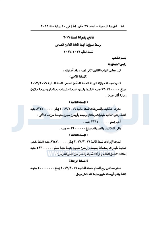 أخبار مصر الجريدة الرسمية تنشر قوانين ربط موازنة عدد من الهيئات الأربعاء 20 يوليو 2016 - 11:52 ص 7/20/2016 11:52:00 AM الجريدة الرسمية - أرشيفية المصدر - خاص طباعة شارك نشرت الجريدة الرسمية، في العدد 266 مكرر "و"، الصادر في 10 يوليو 2016، قوانين ربط موازنة عدد من الهيئات، للسنة المالية الجارية، 2016-2017.لقراءة القرار: طباعة شارك العام المالي السنة المالية الجريدة الرسمية تابع المصدر علي جوجل نيوز تطبيق نبض