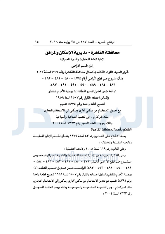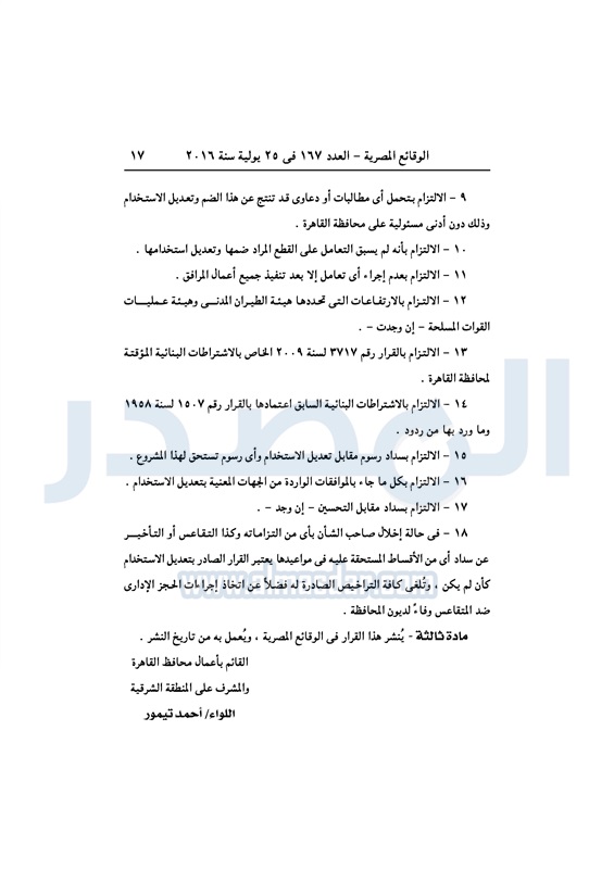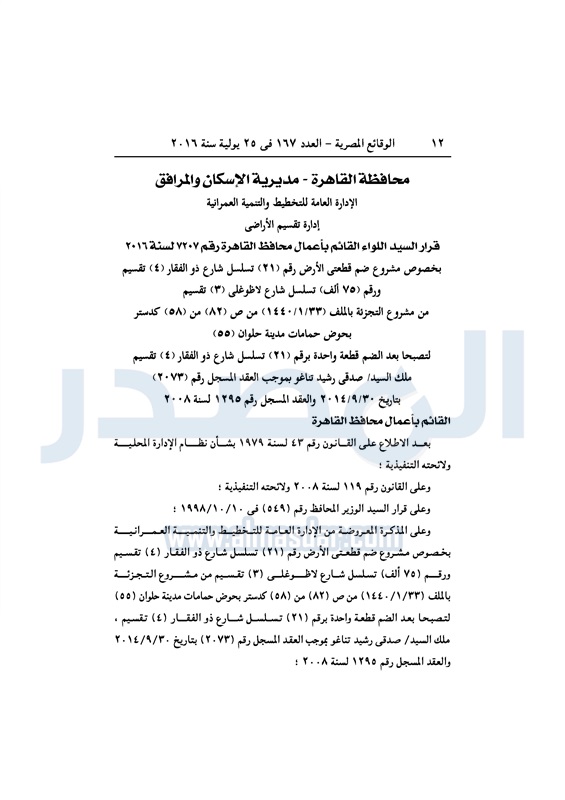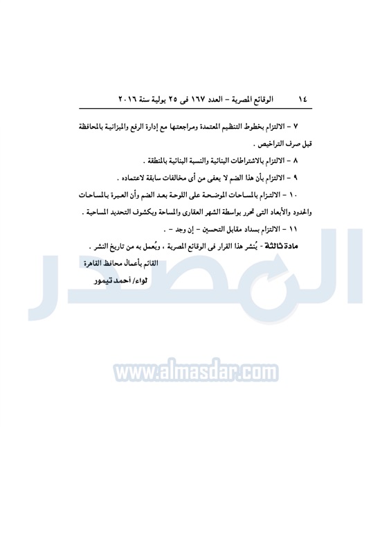 عقارات القائم بأعمال محافظ القاهرة يضم عددًا من الأراضي الإثنين 25 يوليو 2016 - 11:19 ص 7/25/2016 11:19:34 AM أحمد تيمور القائم بأعمال محافظ القاهرة المصدر - خاص طباعة شارك نشرت الوقائع المصرية، في العدد رقم 167، الصادر اليوم 25 يوليو 2016، قراري القائم بأعمال محافظ القاهرة، رقما 7207، و 7209 لسنة 2016، بضم عددا من الأراضي. لقراءة القرار: طباعة شارك محافظ القاهرة الوقائع المصرية العقارات أراضي أحمد تيمور تابع المصدر علي جوجل نيوز تطبيق نبض