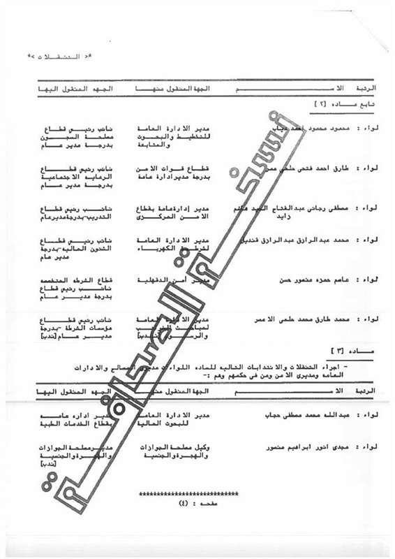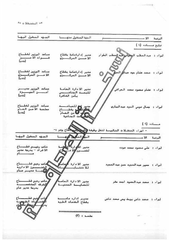 ونشرت وزارة الداخلية -على صفحتها الرسمية على موقع التواصل الاجتماعي فيسبوك- كشوفات بأسماء اللواءات المنقولين في الحركة العامة لضباط الشرطة لعام 2016.