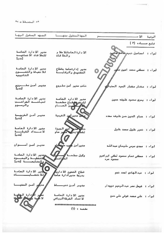 -اللواء مصطفى رجائي عبدالفتاح نائب رئيس قطاع التدريب بدرجة مدير عام.