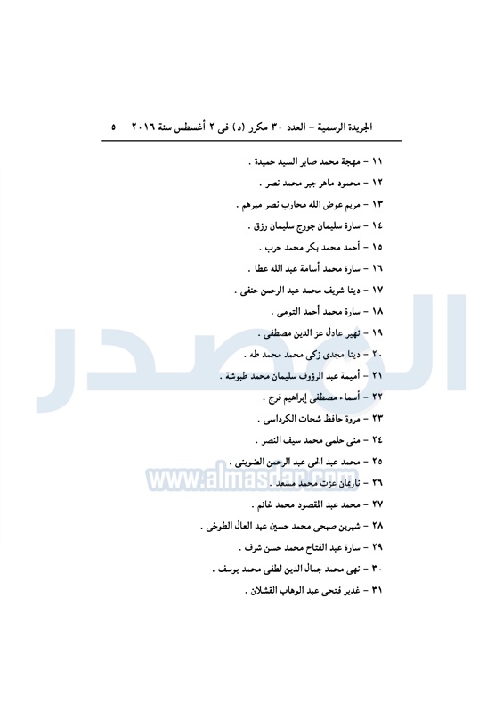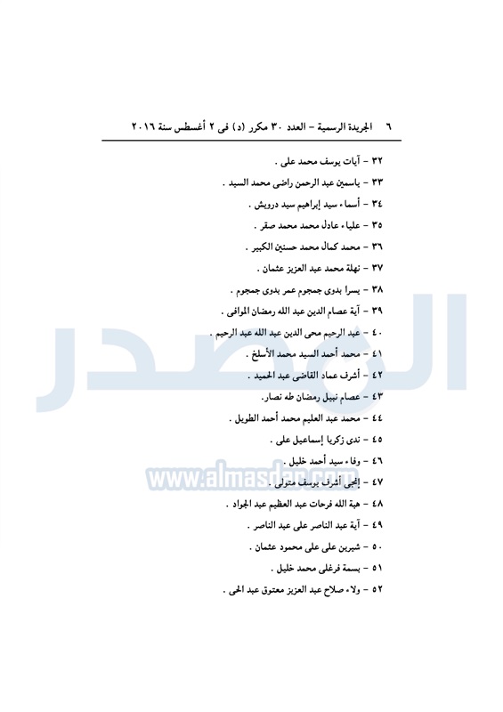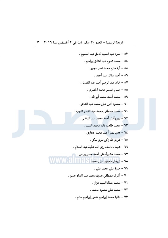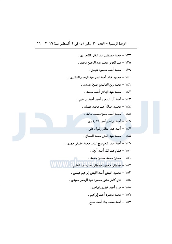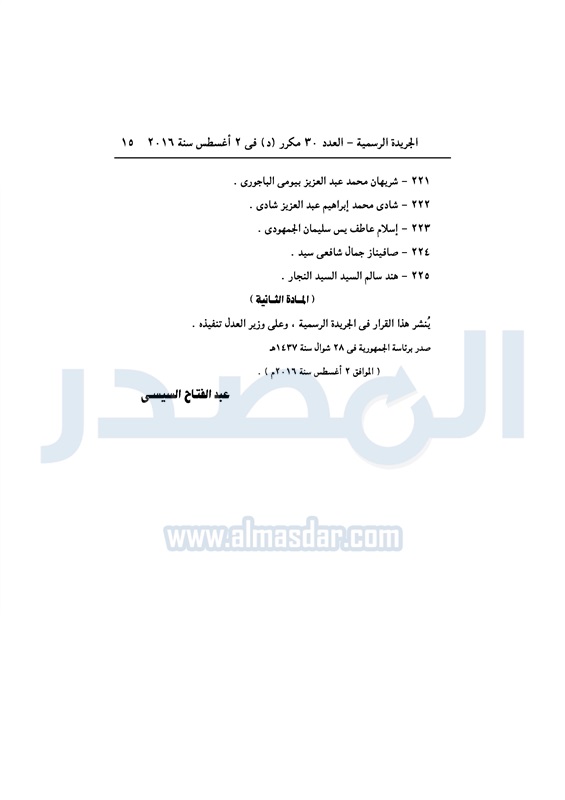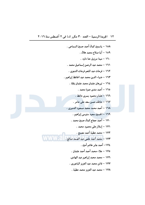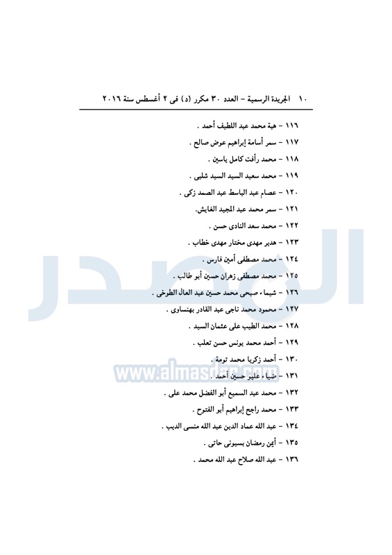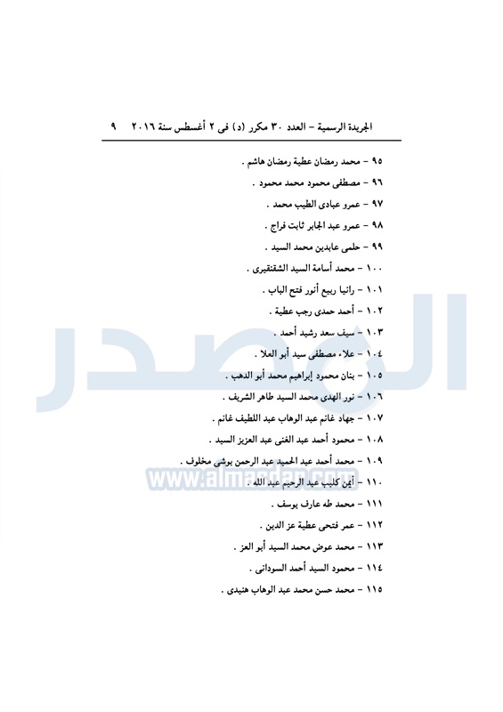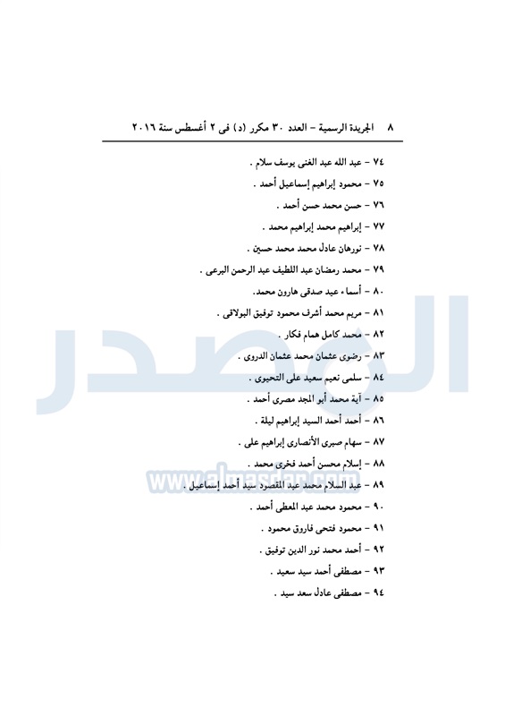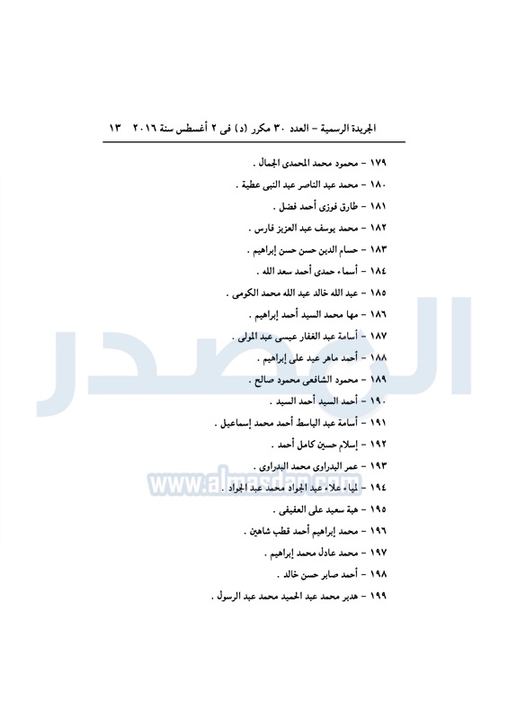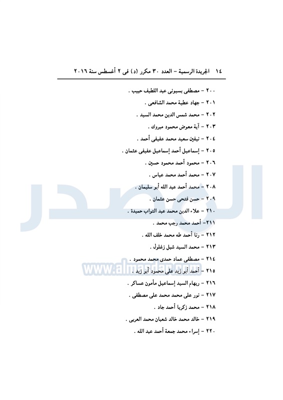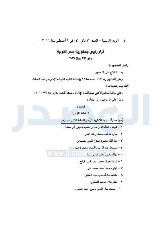 أخبار مصر بالأسماء.. تعيين 225 معاونًا للنيابة الإدارية الخميس 04 أغسطس 2016 - 02:31 م 8/4/2016 2:31:00 PM عبد الفتاح السيسي رئيس الجمهورية المصدر - خاص طباعة شارك نشرت الجريدة الرسمية، في العدد رقم 30 مكرر "د"، الصادر في 2 أغسطس 2016، قرار الرئيس عبد الفتاح السيسي، رقم 349 لسنة 2016، بتعيين 225 معاونًا للنيابة الإدارية.لقراءة القرار: طباعة شارك معاون قرار تعيين عبد الفتاح السيسى تعيين النيابة الاداري الجريدة الرسمية تابع المصدر علي جوجل نيوز تطبيق نبض