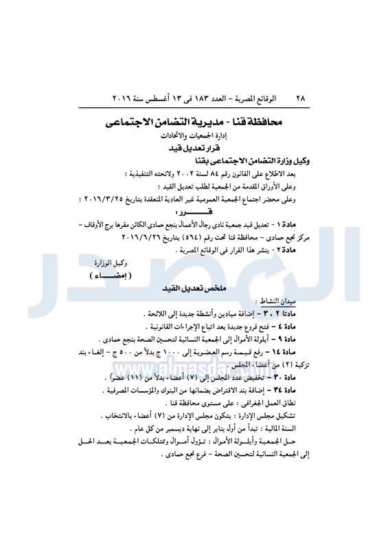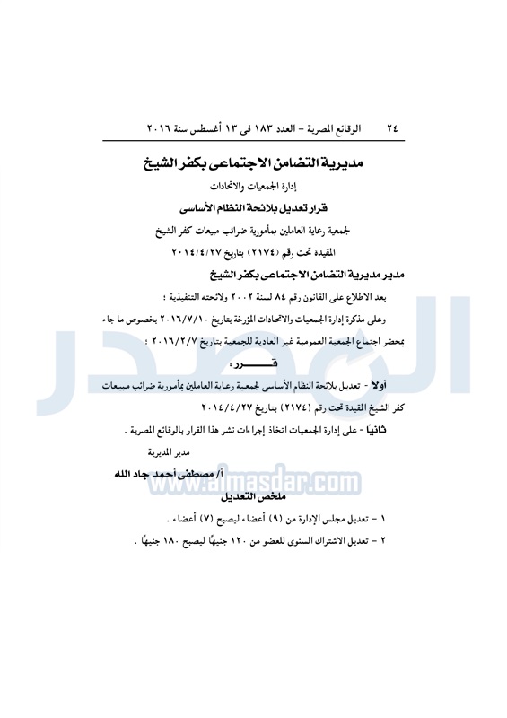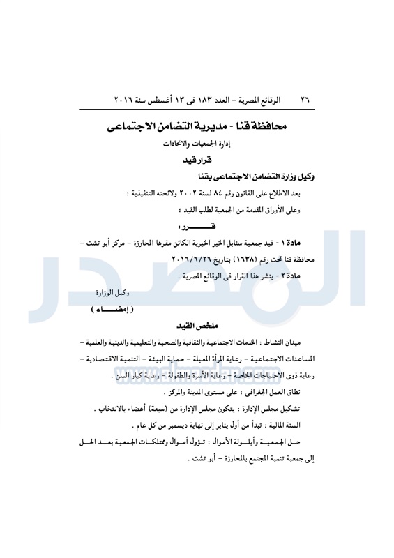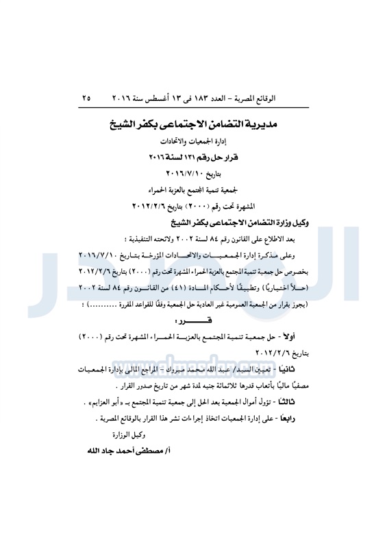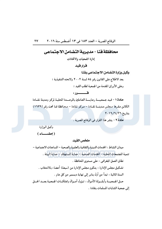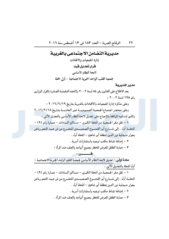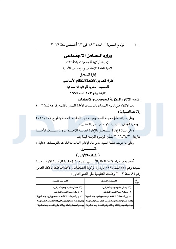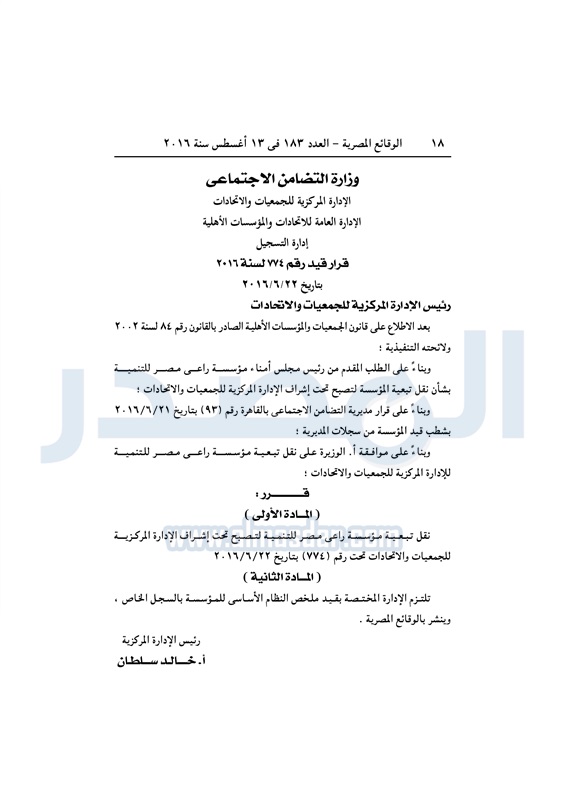 محافظات "التضامن" تقيد عددًا من الجمعيات في المحافظات الأحد 14 أغسطس 2016 - 10:13 ص 8/14/2016 10:13:00 AM التضامن الاجتماعي - أرشيفية المصدر - خاص طباعة شارك نشرت الوقائع المصرية، في العدد رقم 183، الصادر في 13 أغسطس 2016، قرارات وزارة التضامن الاجتماعي، ومديريات التضامن في عدد من المحافظات، بشأن قيد وشهر وحل عدد من الجمعيات.لقراءة القرار: طباعة شارك لائحة النظام الأساسي جمعيات الوقائع المصرية النظام الاساسي التضامن الاجتماعي تابع المصدر علي جوجل نيوز تطبيق نبض