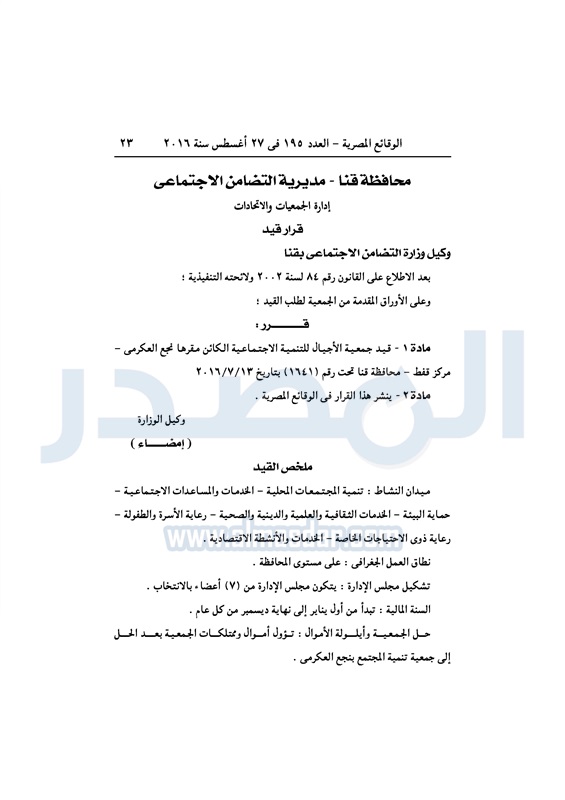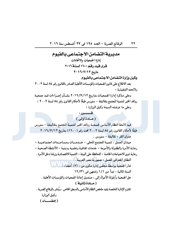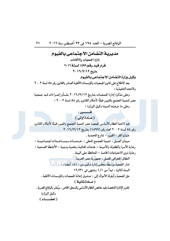 محافظات "التضامن" تقيد عددًا من الجمعيات في المحافظات الأحد 28 أغسطس 2016 - 11:12 ص 8/28/2016 11:12:00 AM التضامن الاجتماعي - أرشيفية المصدر - خاص طباعة شارك نشرت الوقائع المصرية، في العدد رقم 195، الصادر في 27 أغسطس 2016، قرارات وزارة التضامن الاجتماعي، ومديريات التضامن في عدد من المحافظات، بشأن قيد وشهر وحل عدد من الجمعيات.لقراءة القرار: طباعة شارك لائحة النظام الأساسي جمعيات المحافظات التضامن الاجتماعي التضامن تابع المصدر علي جوجل نيوز تطبيق نبض