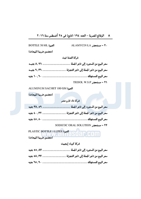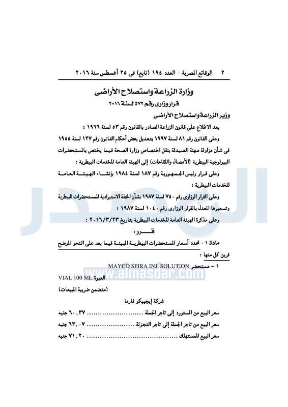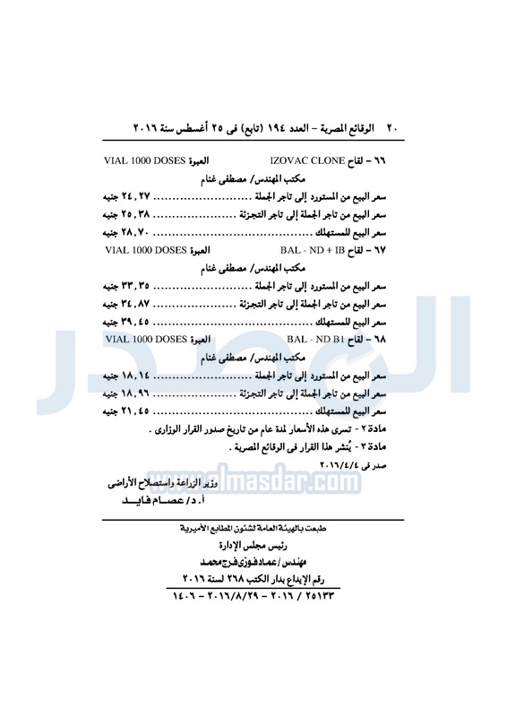 أسواق "الزراعة" تحدد أسعار عدد من المستحضرات البيطرية الإثنين 29 أغسطس 2016 - 10:47 ص 8/29/2016 10:47:00 AM عصام فايد وزير الزراعة المصدر - خاص طباعة شارك نشرت الوقائع المصرية، في العدد رقم 194 "تابع"، الصادر في 25 أغسطس 2016، قرار وزارة الزراعة واستصلاح الأراضي، رقم 572 لسنة 2016، بتحديد أسعار عدد من المستحضرات البيطرية.لقراءة القرار: طباعة شارك الوقائع المصرية المستحضرات البيطرية الزراعة الأسواق الأسعار تابع المصدر علي جوجل نيوز تطبيق نبض