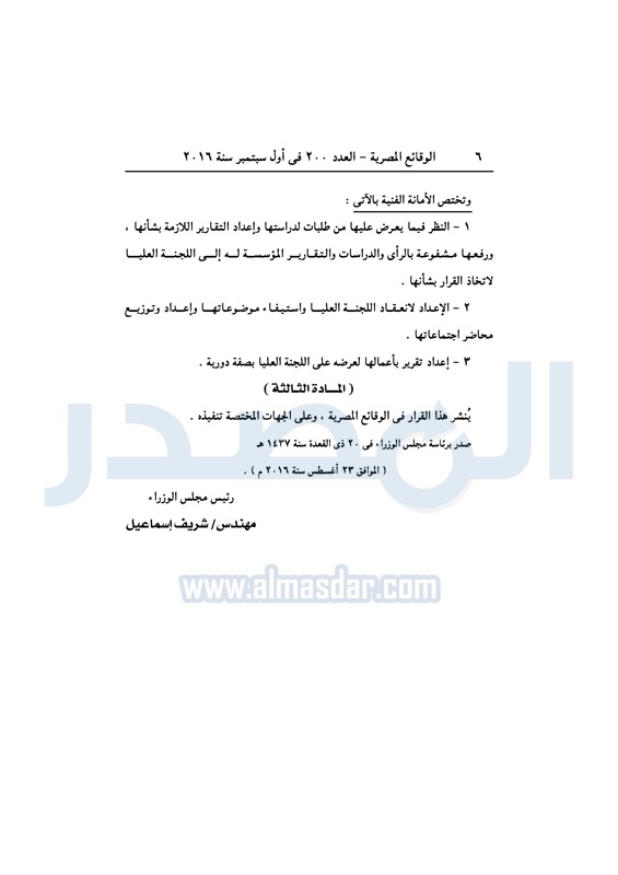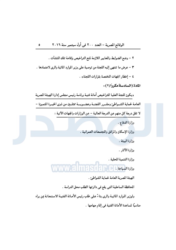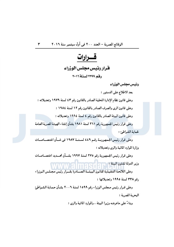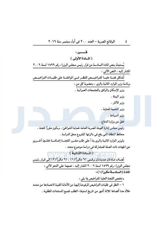أخبار مصر رئيس الوزراء يعدل قرار حماية الشواطئ المصرية الخميس 01 سبتمبر 2016 - 12:18 م 9/1/2016 12:18:00 PM شريف إسماعيل رئيس مجلس الوزراء المصدر - خاص طباعة شارك نشرت الوقائع المصرية، في العدد رقم 200، الصادر في 1 سبتمبر 2016، قرار رئيس مجلس الوزراء، رقم 2299 لسنة 2016، بتعديل قرار حماية الشواطئ البحرية المصرية.لقراءة القرار: طباعة شارك شواطئ شريف اسماعيل رئيس الوزراء الوقائع المصرية البحرية تابع المصدر علي جوجل نيوز تطبيق نبض