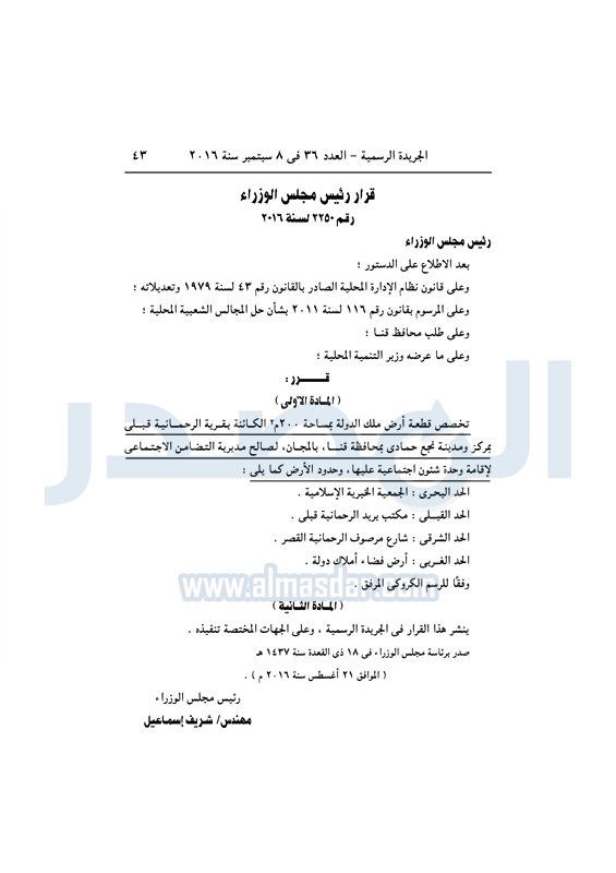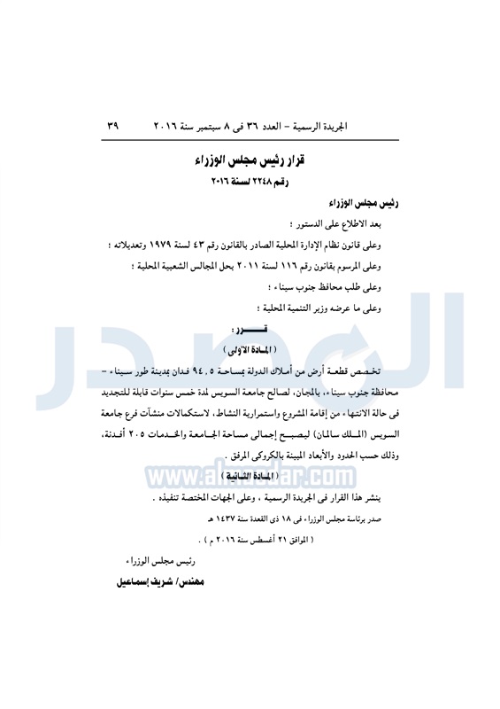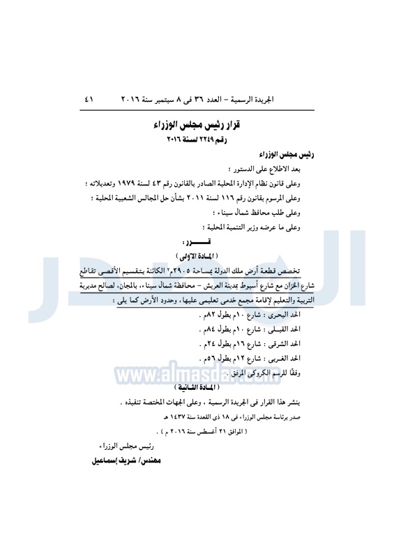 عقارات رئيس الوزراء يخصص قطع أراضي لعدد من الجهات الخميس 08 سبتمبر 2016 - 10:51 ص 9/8/2016 10:51:00 AM شريف إسماعيل رئيس الوزراء المصدر - خاص طباعة شارك نشرت الجريدة الرسمية في العدد رقم 36 الصادر في 8 سبتمبر 2016، قرارات رئيس مجلس الوزارء، بشأن إعادة تخصيص عدد من الأراضي من أملاك الدولة.لقراءة القرارات: طباعة شارك شريف اسماعيل رئيس الوزراء الحكومة الجريدة الرسمية أراضى الدولة تابع المصدر علي جوجل نيوز تطبيق نبض