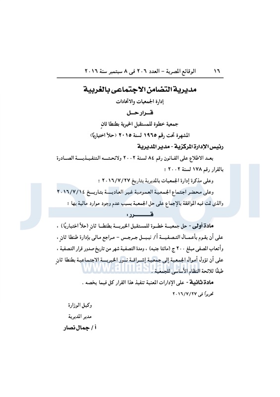 محافظات "التضامن" تقيد عددا من الجمعيات بالمحافظات الخميس 08 سبتمبر 2016 - 12:12 م 9/8/2016 12:12:00 PM وزارة التضامن الاجتماعي - أرشيفية المصدر - خاص طباعة شارك نشرت الوقائع المصرية في العدد رقم 206 الصادر في 8 سبتمبر 2016، قرارات مديرية التضامن الاجتماعي بشأن قيد عدد من الجمعيات بالمحافظات.لقراءة القرارات: طباعة شارك الوقائع المصرية المحافظات الجمعيات الأهلية التضامن الاجتماعي تابع المصدر علي جوجل نيوز تطبيق نبض
