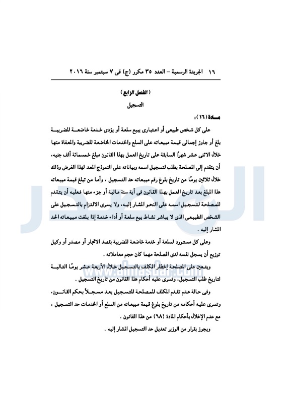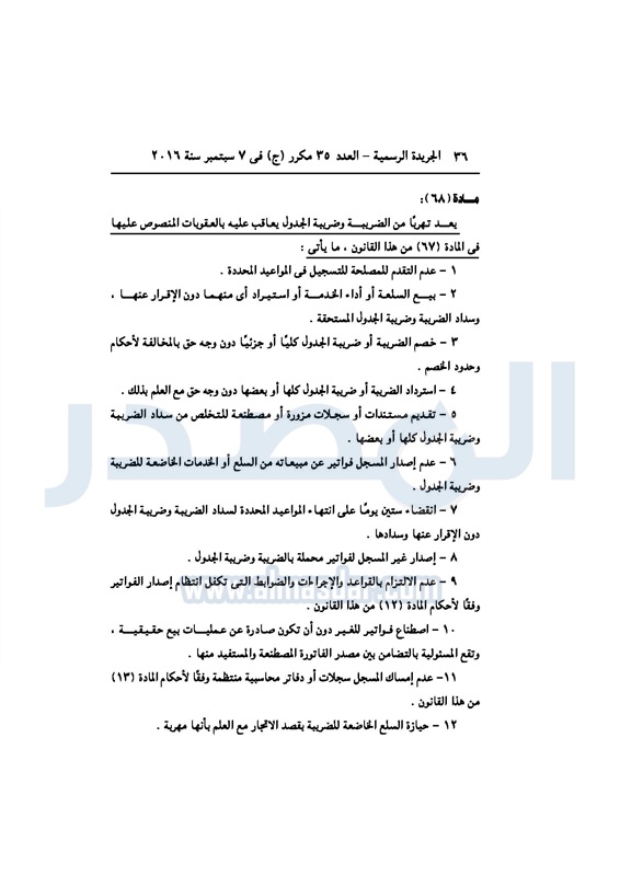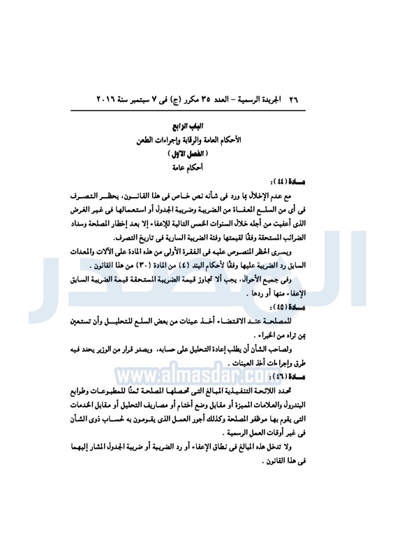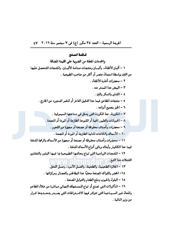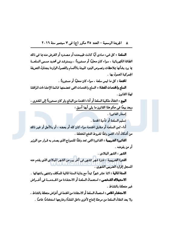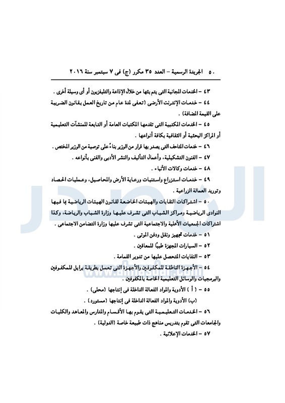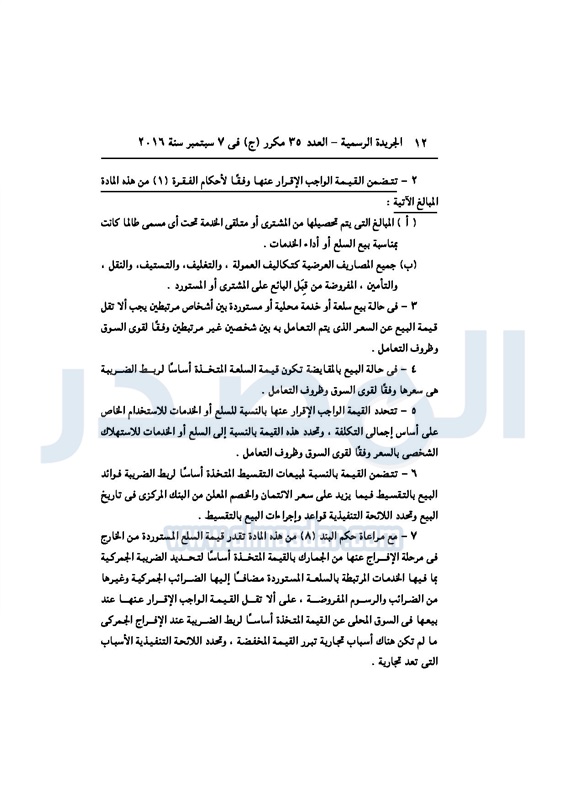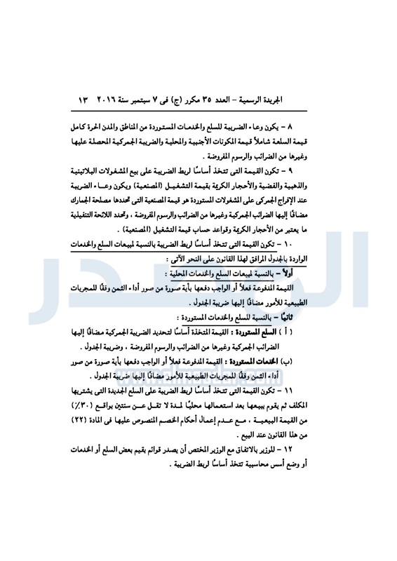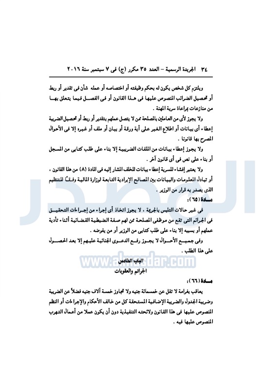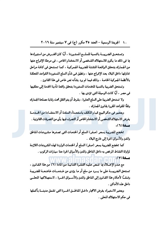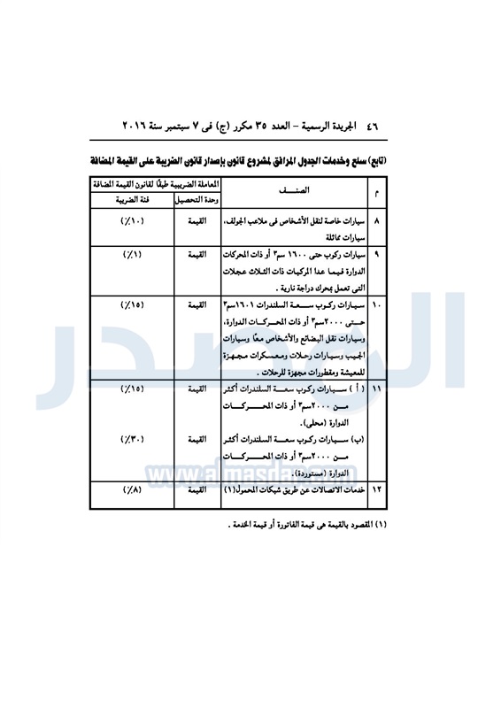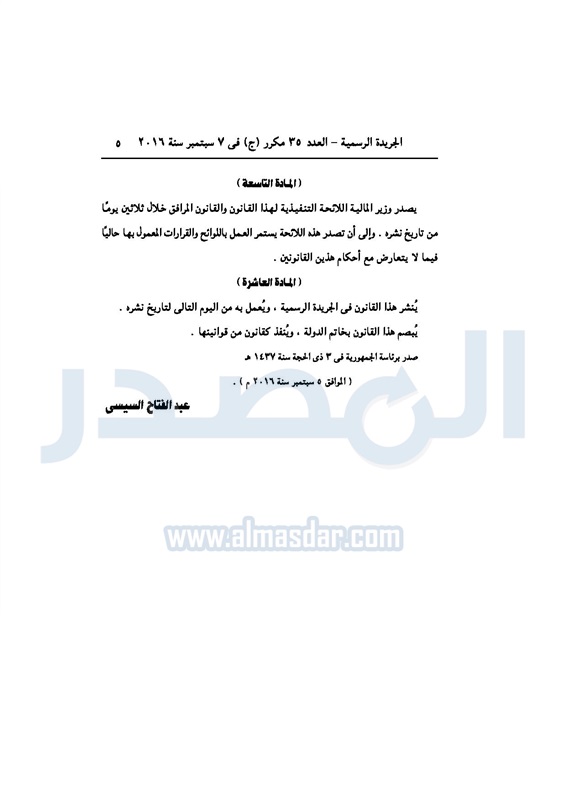 أخبار مصر السيسي يصدر قانون القيمة المضافة بعد موافقة البرلمان الخميس 08 سبتمبر 2016 - 02:51 م 9/8/2016 2:51:00 PM عبد الفتاح السيسي رئيس الجمهورية المصدر - خاص طباعة شارك نشرت الجريدة الرسمية في العدد رقم 35 مكرر "ج" الصادر في 7 سبتمبر 2016، قرار رئيس الجمهورية، رقم 67 لسنة 2016، بشأن إصدار قانون الضريبة على القيمة المضافة.لقراءة القرار: طباعة شارك مجلس النواب قانون القيمة المضافة القيمة المضافة السيسى الجريدة الرسمية البرلمان تابع المصدر علي جوجل نيوز تطبيق نبض