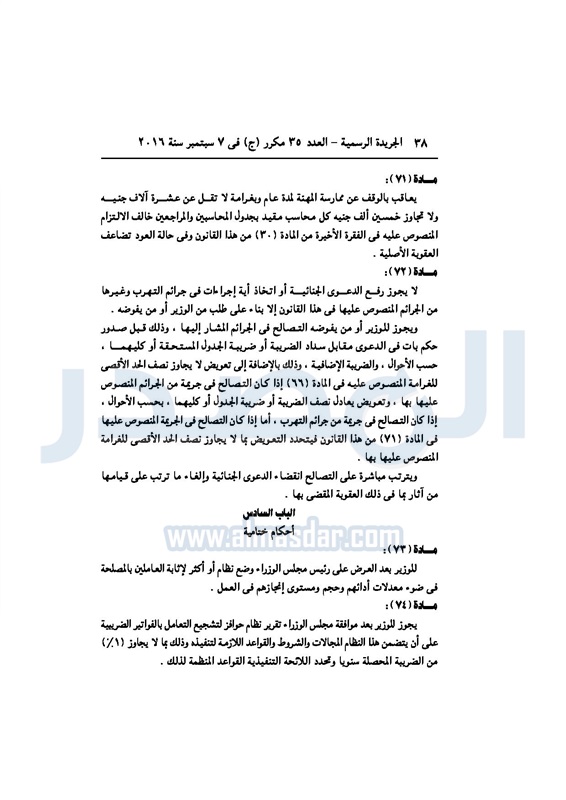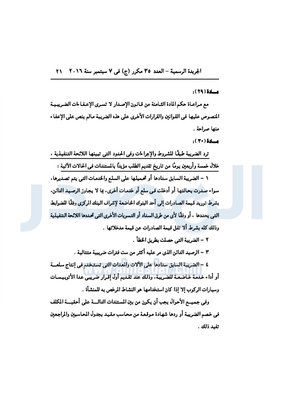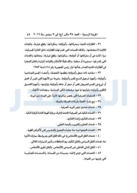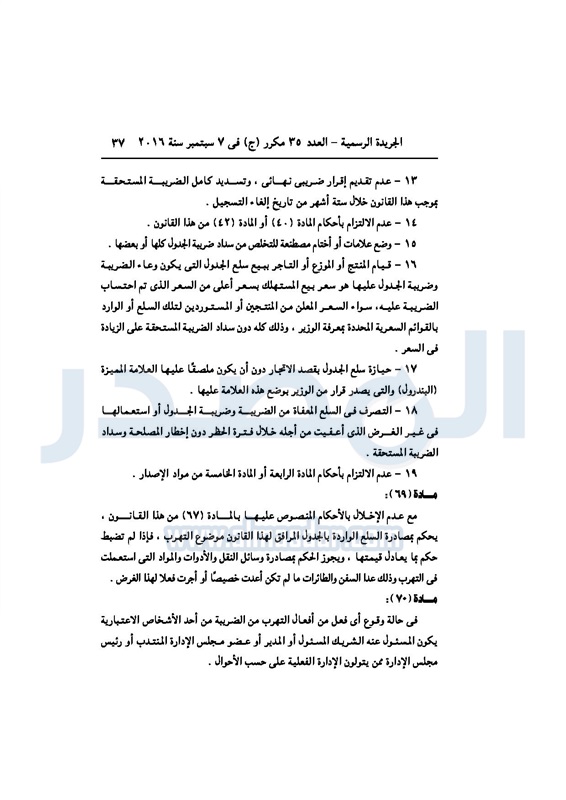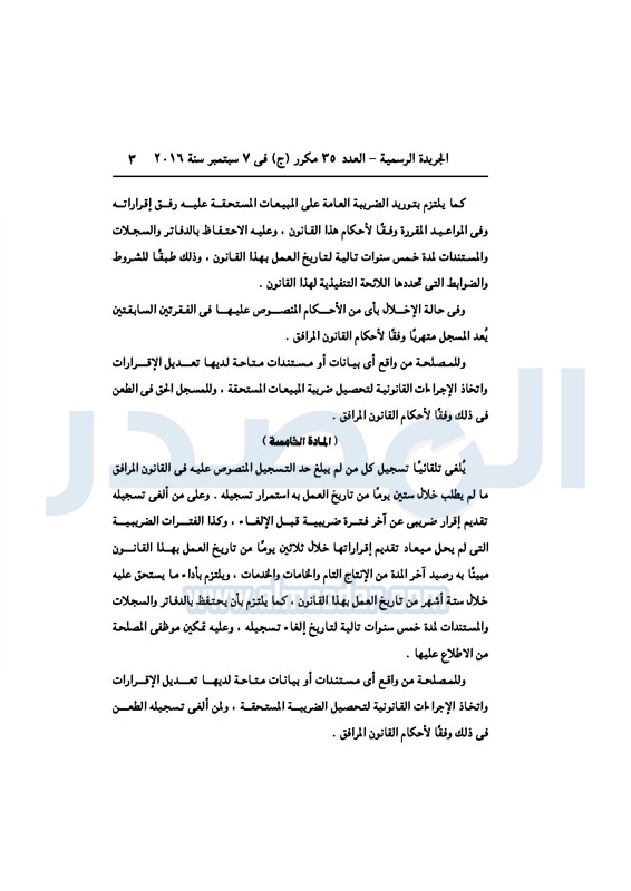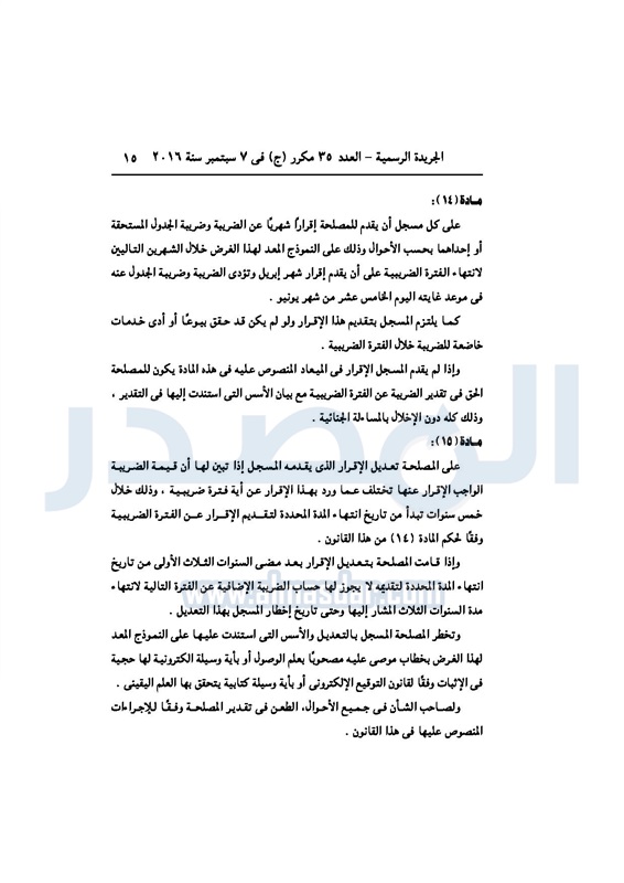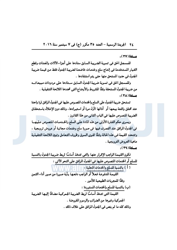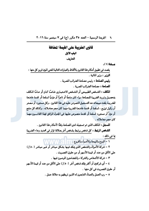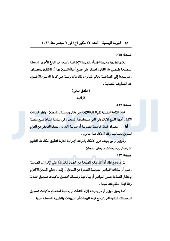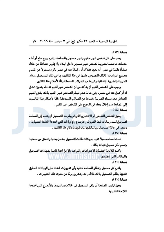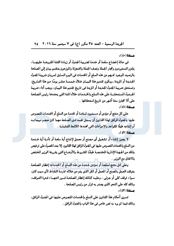 أخبار مصر السيسي يصدر قانون القيمة المضافة بعد موافقة البرلمان الخميس 08 سبتمبر 2016 - 02:51 م 9/8/2016 2:51:00 PM عبد الفتاح السيسي رئيس الجمهورية المصدر - خاص طباعة شارك نشرت الجريدة الرسمية في العدد رقم 35 مكرر "ج" الصادر في 7 سبتمبر 2016، قرار رئيس الجمهورية، رقم 67 لسنة 2016، بشأن إصدار قانون الضريبة على القيمة المضافة.لقراءة القرار: طباعة شارك مجلس النواب قانون القيمة المضافة القيمة المضافة السيسى الجريدة الرسمية البرلمان تابع المصدر علي جوجل نيوز تطبيق نبض