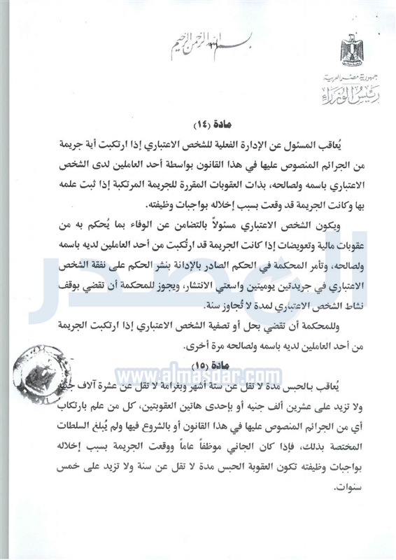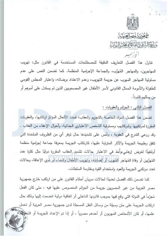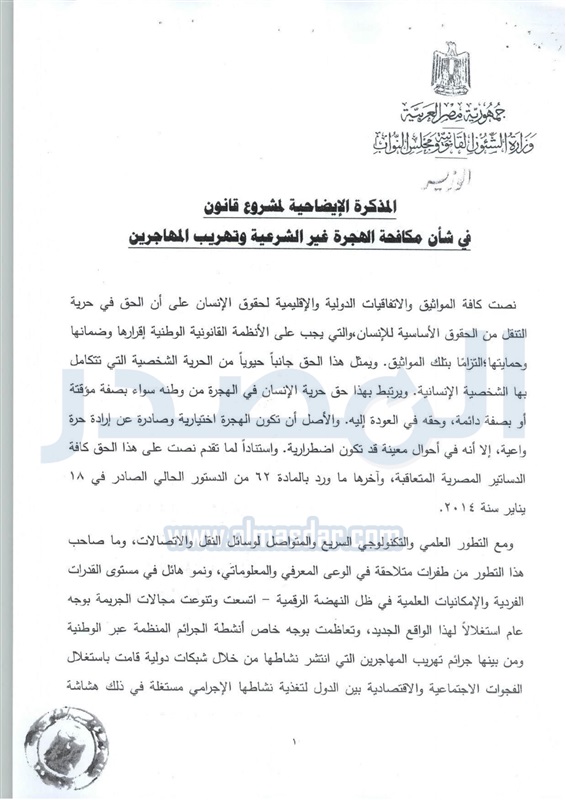 حصلت "المصدر" على نص مشروع قانون مكافحة الهجرة غير الشرعية وتهريب المهاجرين الذي تم إرساله لمجلس النواب منذ شهر يونيو 2016.