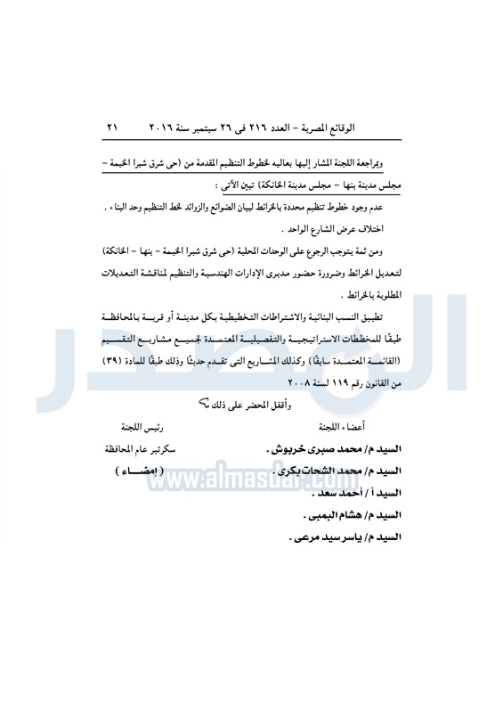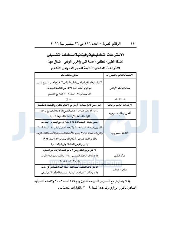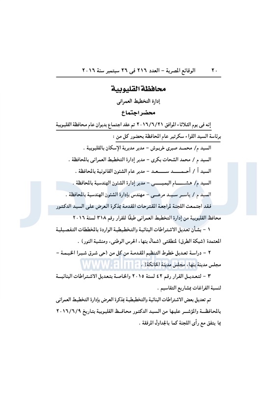 محافظات محافظة القليوبية تقرر تعديل اشتراطات بنائية لبعض المناطق والأحياء الإثنين 26 سبتمبر 2016 - 12:59 م 9/26/2016 12:59:00 PM محافظة الدقهلية صورة أرشيفية المصدر - خاص طباعة شارك نشرت الوقائع المصرية في العدد رقم 216 الصادر في 26 سبتمبر 2016، قرار محافظة القليوبية، بشأن إدارة التخطيط العمراني لعدة مناطق.لقراءة القرار: طباعة شارك محافظة الدقهلية محافظ الدقهلية حسام الدين إمام محافظ الدقهلية الوقائع المصرية تابع المصدر علي جوجل نيوز تطبيق نبض