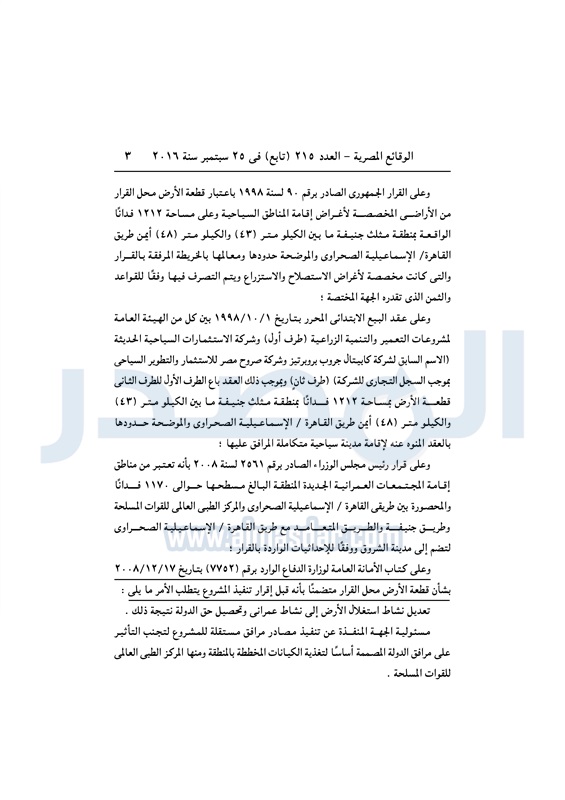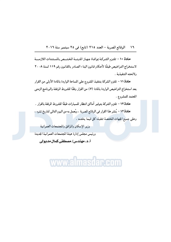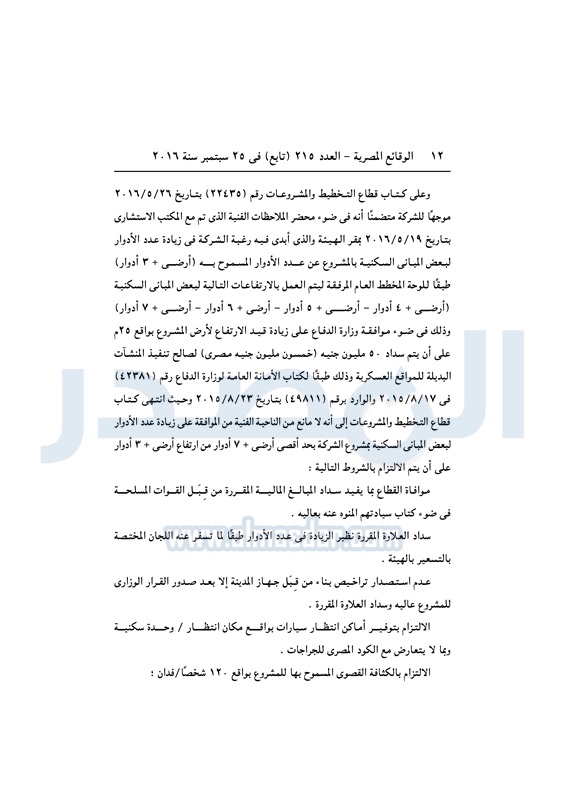 نشرت الوقائع المصرية في العدد رقم 2015 "تابع" الصادر في 25 سبتمبر 2016، قرار وزارة الإسكان رقم 517 لسنة 2016، بشأن اعتماد المخطط الكامل لمشروع شركة كابيتال بروبرتيز للتطوير العقاري، والمخطط التفصيلي للمرحلة الأولى من المشروع بمدينة الشروق.