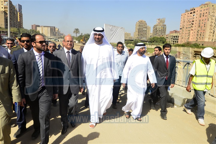 وزير الدولة الإماراتي يتفقد إنشاءات جسر مزلقان "أرض اللواء" بالجيزة